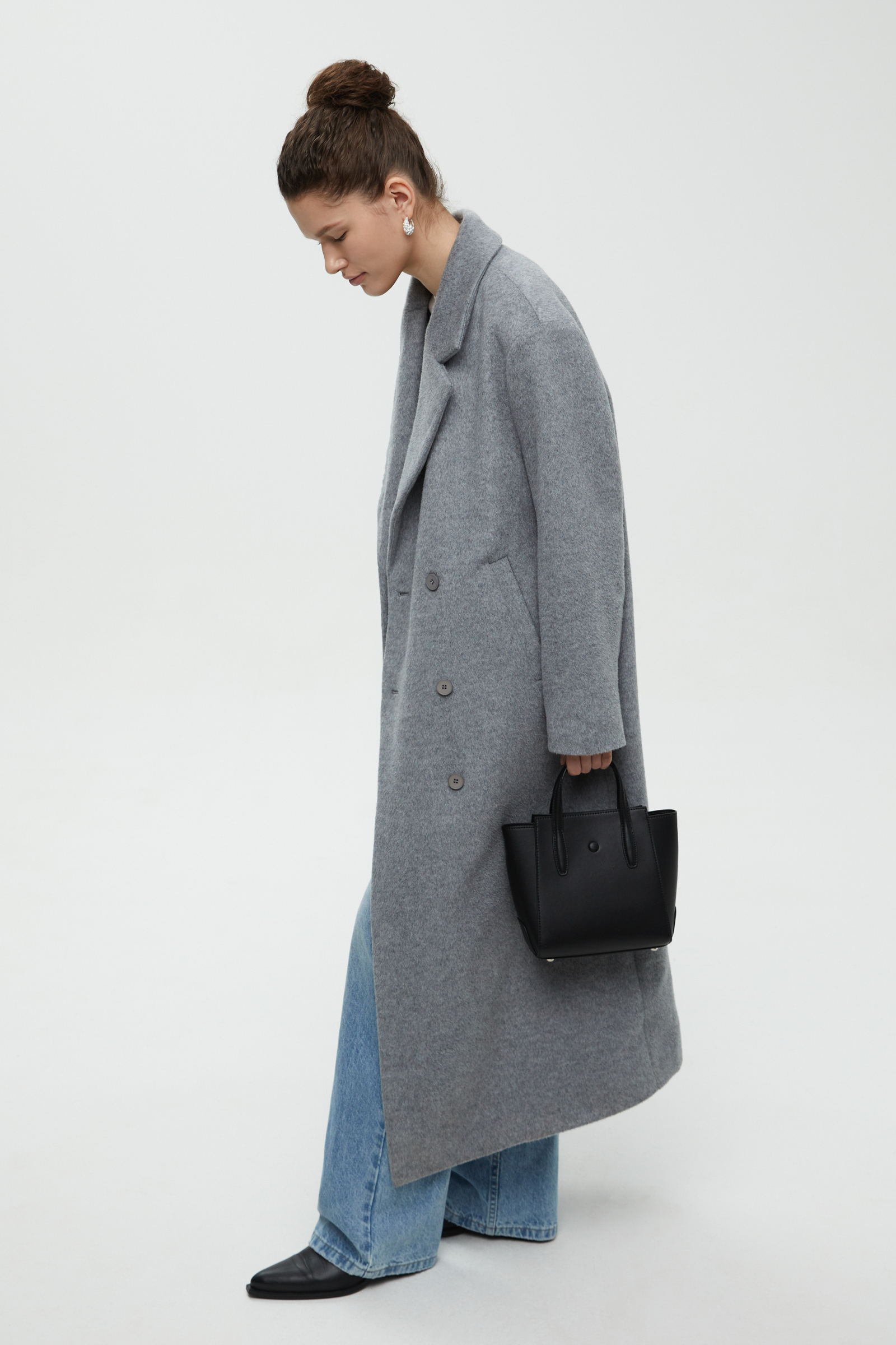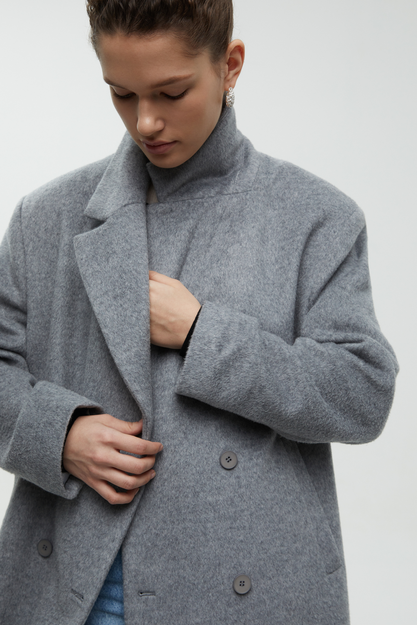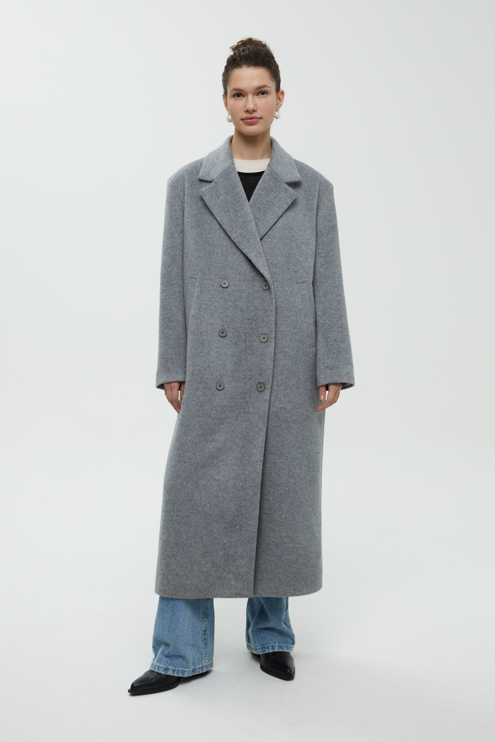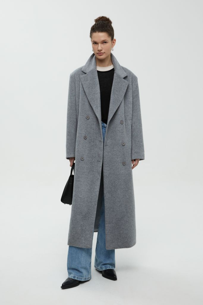 Двубортное пальто свободного силуэта