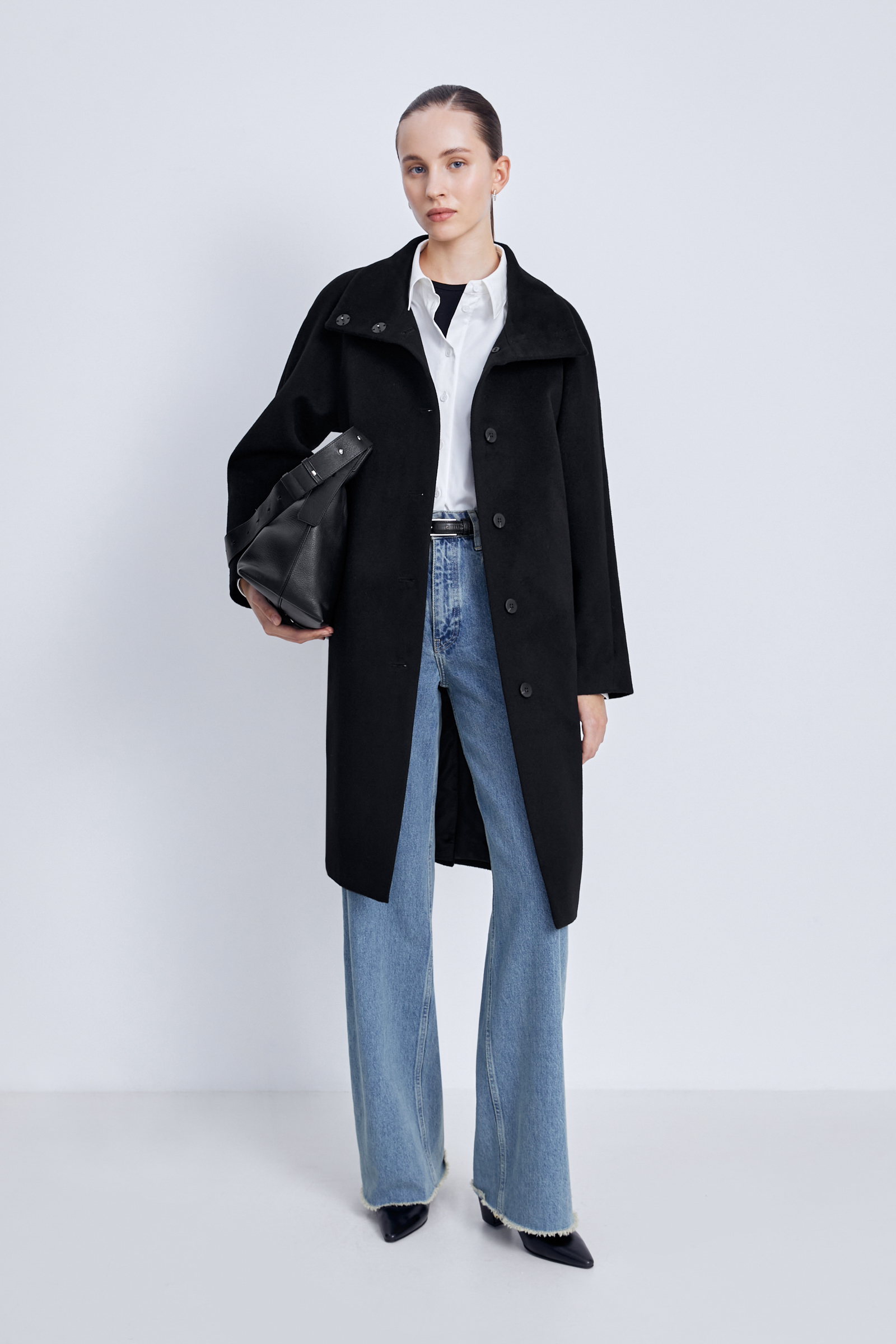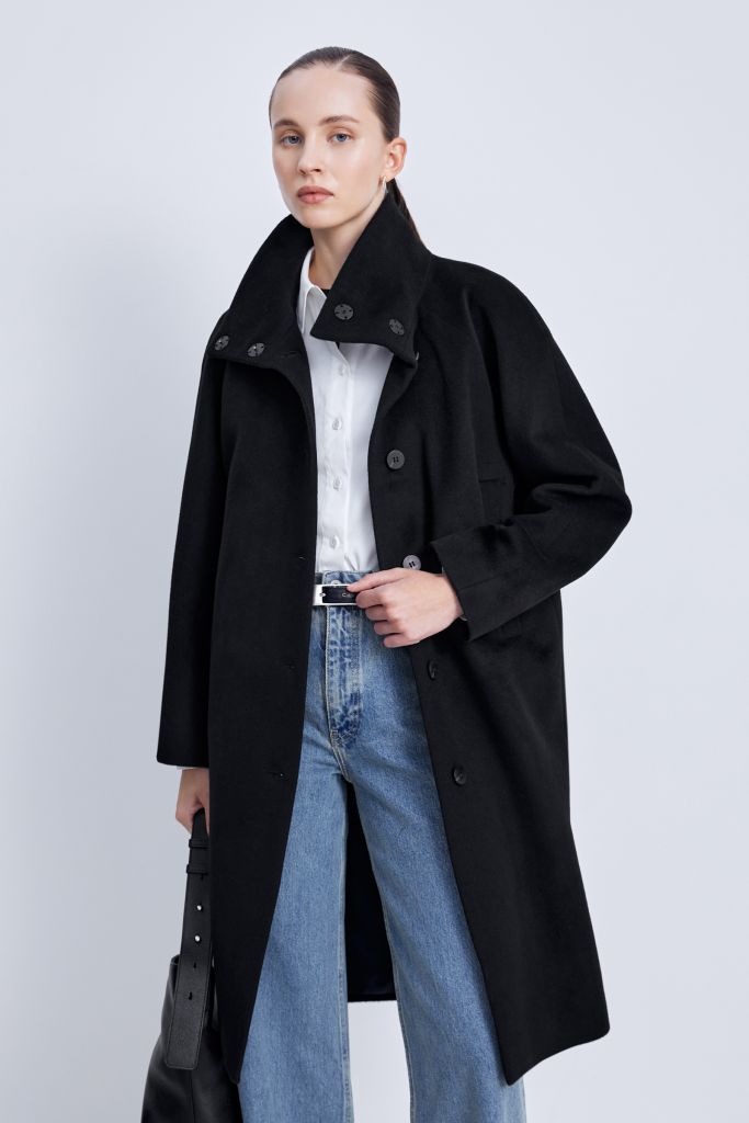 Однобортное пальто из шерсти и шелка