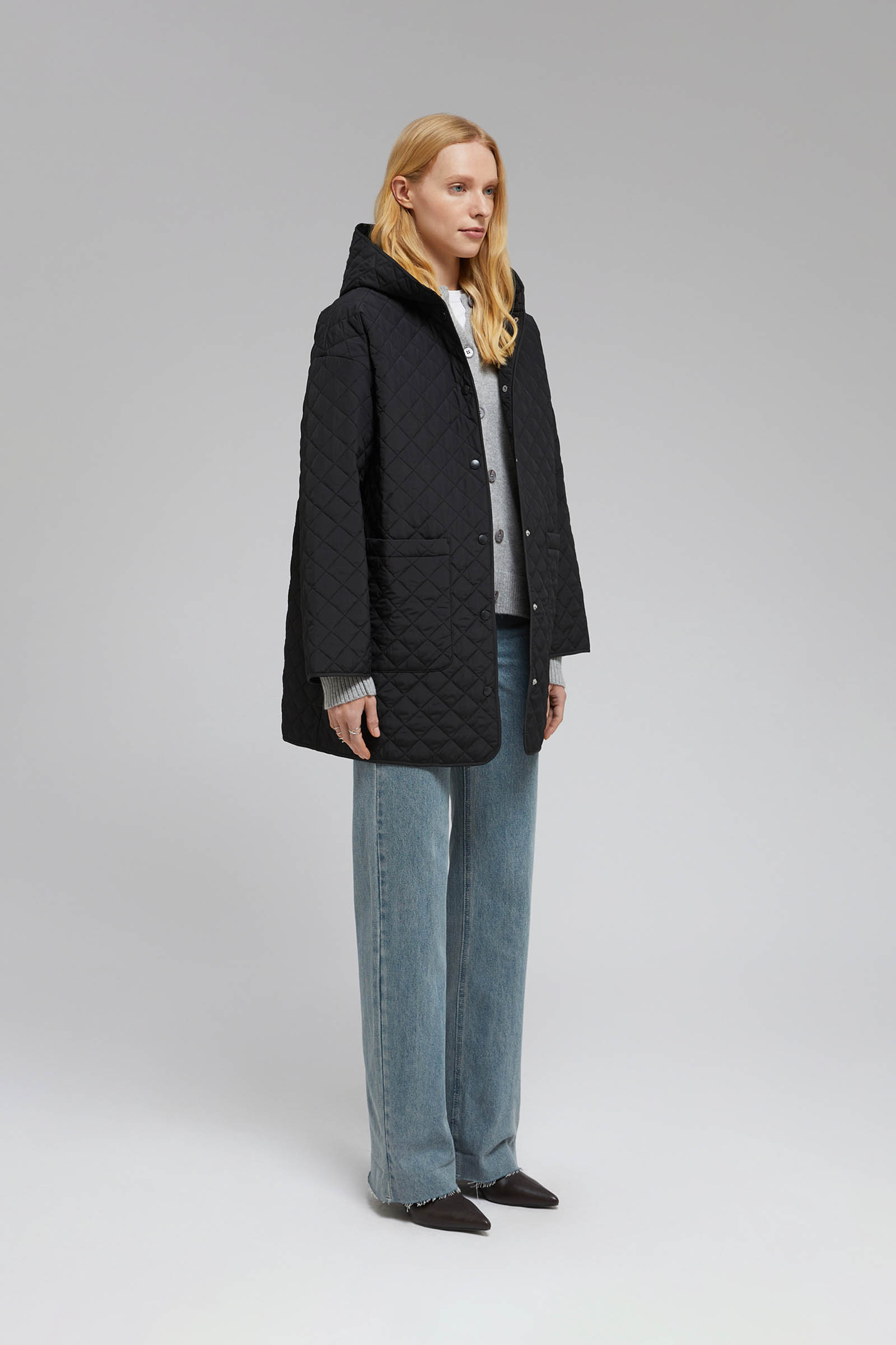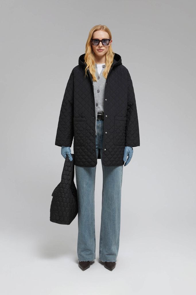 Утепленное полупальто с накладными карманами
