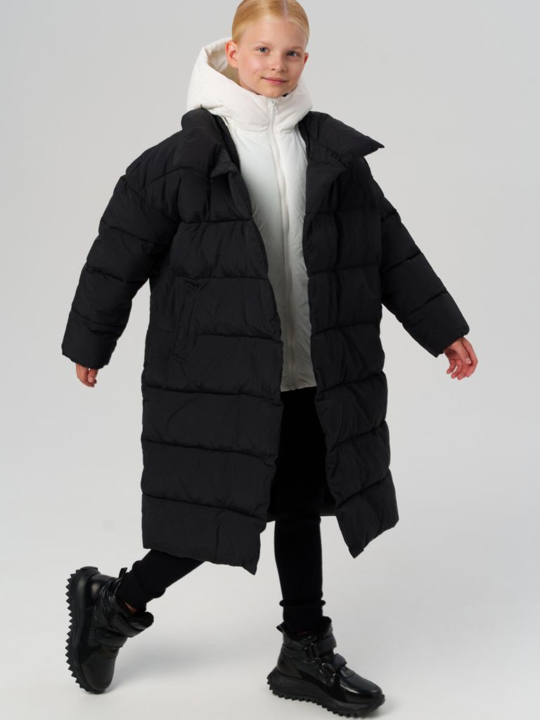 Функциональные боковые карманы надёжно хранят нужные мелочи, а капюшон с регулировкой защищает голову от ветра и осадков. Такое стильное школьное пальто для подростков станет удобной базой для зимнего гардероба — практичное, современное и тёплое.