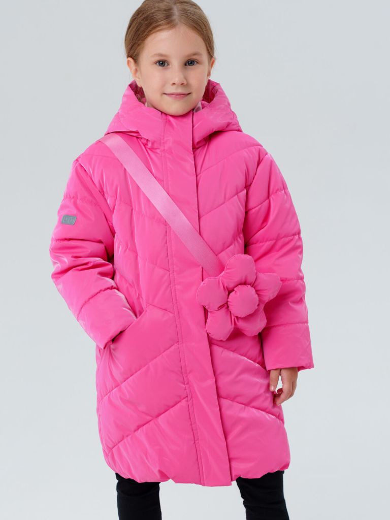 Карманы с застёжкой на магнитных кнопках удобны и безопасны — можно хранить в них перчатки, снежки или маленькие сокровища, найденные на прогулке. В комплект входит сумочка на ремне, которая добавляет образу оригинальности и позволяет девочке носить с собой необходимые мелочи.