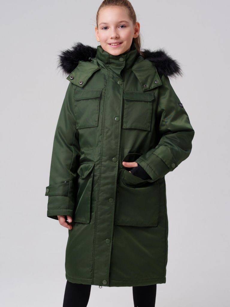 Это пальто станет стильным решением для холодных дней и прекрасно подойдёт как для школы, так и для повседневных прогулок. Благодаря продуманному крою и утеплённой подкладке из таффеты, модель сохраняет тепло при температуре до –5°C* и не сковывает движения.