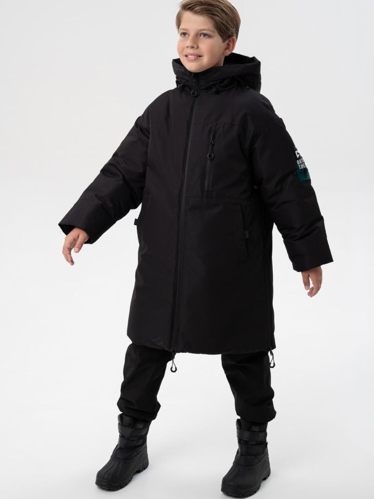 Пальто прекрасно сочетается с утеплёнными брюками или джинсами с термобельём, вязаной шапкой, варежками и зимними ботинками от PlayToday. Идеальный вариант как для школы, так и для прогулок или поездок за город. Яркие или базовые аксессуары легко дополнят образ. Размерный ряд: модель представлена на рост 128–176 см — для мальчиков от 8 лет.