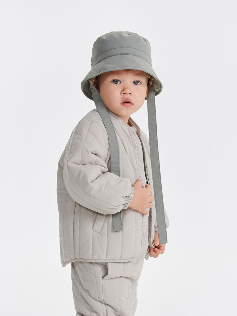 Панама на завязках — выразительная и функциональная, из трендовой жатой ткани, с водоотталкивающей пропиткой. Защита от солнца, легкого дождя и ветра в одном аксессуаре. Идеально сочетается с курткой Dumi и брюками Kofi из нашей коллекции. Снабжена легким утеплителем 30 г/м² и рассчитана на весну и раннюю осень при температуре от +10 °C до +18 °C.