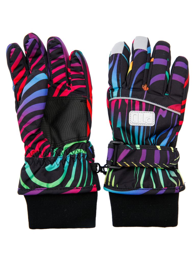 Зимние перчатки с мембраной. Утеплитель – синтепон. Мягкая ладошка из влагостойкого полиуретана. Регулируемая застёжка с липучкой по запястью. Застежка для скрепления пары между собой. Эластичный манжет. Светоотражающие элементы.