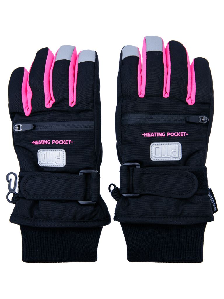 Зимние перчатки с мембраной. Утеплитель – синтепон. Мягкая ладошка из влагостойкого полиуретана. Регулируемая застёжка с липучкой по запястью. Застежка для скрепления пары между собой. Эластичный манжет. Светоотражающие элементы. Водонепроницаемый карман на молнии.