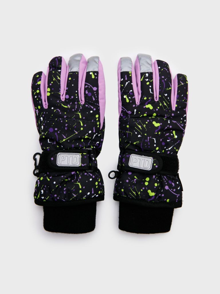 Перчатки для девочки подростка. Утепленные перчатки из мембранной ткани 5000*5000 - необходимый аксессуар для холодного времени года (осень, зима). Перчатки имеют флисовую подкладку и тесьму с карабинами, благодаря которой можно крепить перчатки друг к другу. Трикотажный манжет с защитой от снега. Специальный протектор на ладонной части усиливает износостойкость изделия и возможность регулировки ширины запястья.