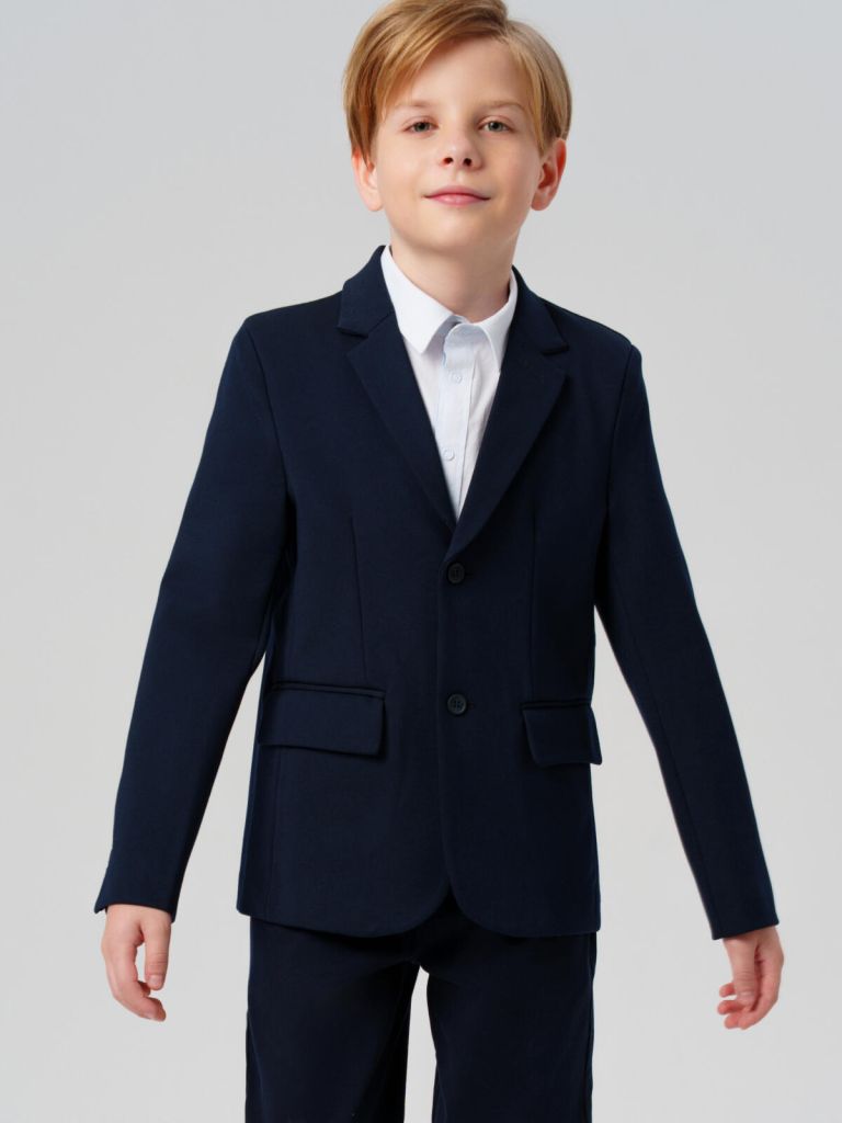 Модный синий трикотажный пиджак в школу для мальчика от PlayToday — комфорт, элегантность и практичность на каждый школьный день!
