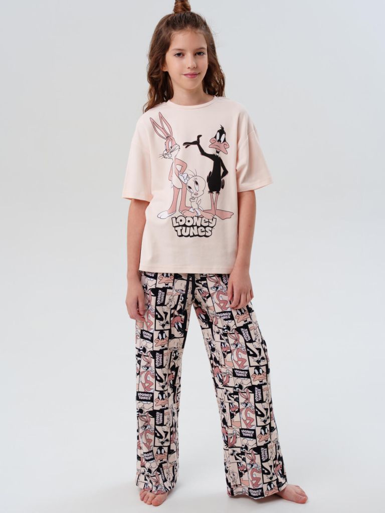 Трикотажная пижама для девочки подростка от бренда PlayToday — уютный и практичный домашний комплект. Свободный оверсайз крой, мягкая ткань и удобная посадка делают модель идеальной для домашнего гардероба в холодное время года.