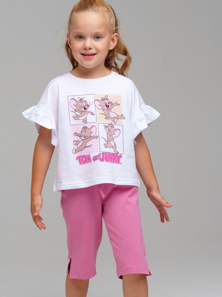 Пижама: футболка, бриджи. Эластичный пояс с тесьмой позволяет легко надевать брюки и утягивать до комфортной посадки. Высокое содержание хлопка 93%. Благодаря наличию эластана в составе ткани, изделие проще в уходе и держит форму.