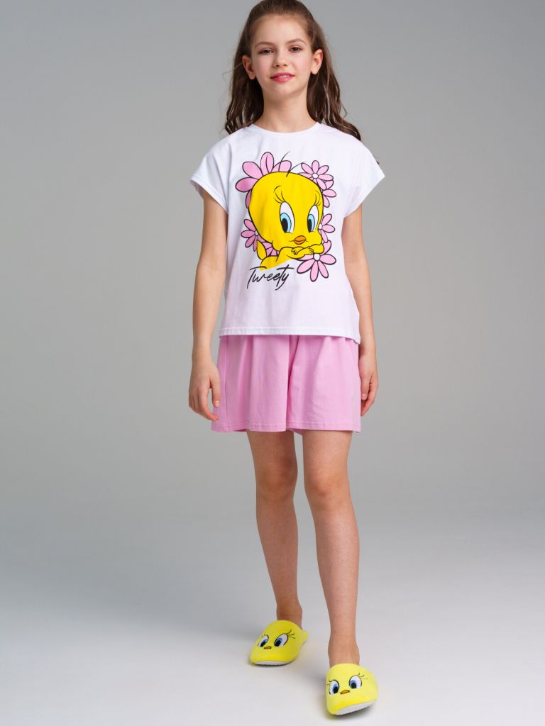 Пижама comfort fit: футболка, шорты из качественного и приятного на ощупь трикотажа джерси. Высокое содержание хлопка 95%. Благодаря наличию эластана в составе ткани изделие проще в уходе и держит форму. Шорты с эластичным поясом со шнурком.