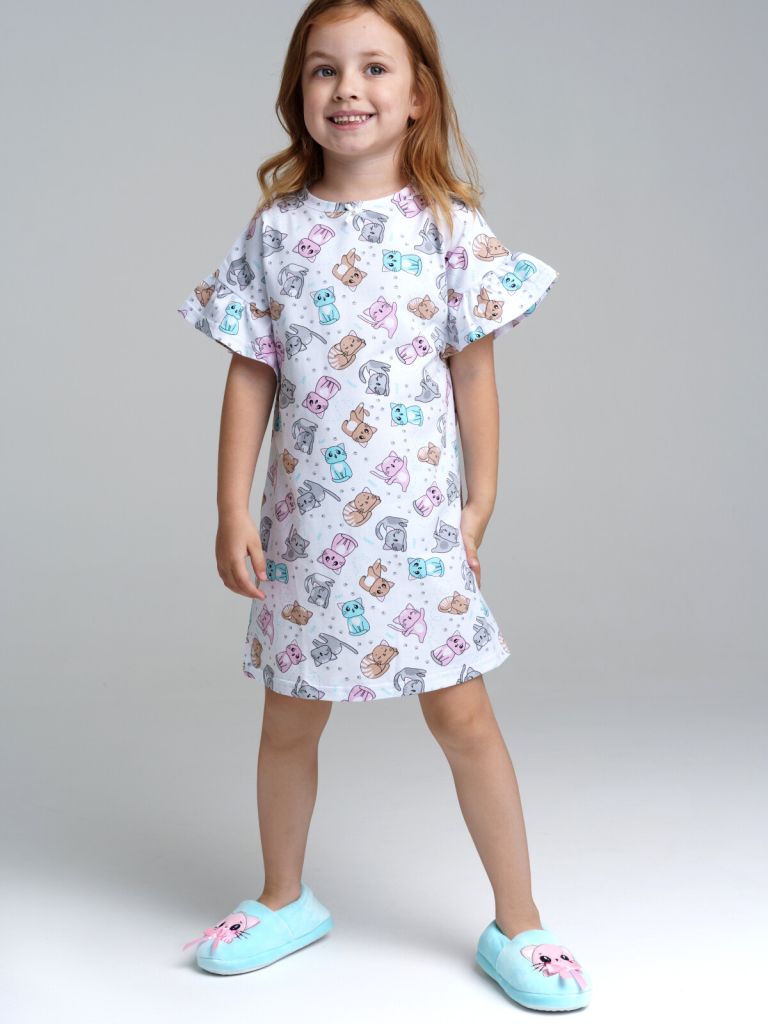 Ночная сорочка А-силуэта с цельнокроеными рукавами. Высокое содержание хлопка 93%. Благодаря наличию эластана в составе ткани изделие проще в уходе и держит форму.