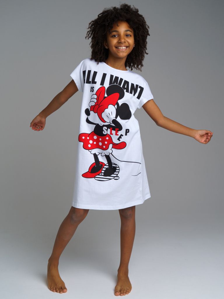 Ночная сорочка с принтом Disney. Высокое содержание хлопка 95%, а благодаря наличию эластана в составе ткани изделие проще в уходе и держит форму.