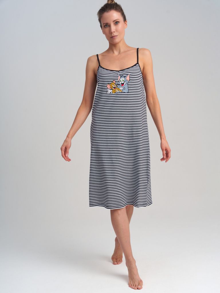 Женская ночная сорочка. Ночнушка из эластичного и приятного на ощупь трикотажа. Регулируемые лямки. Высокое содержание хлопка 95%. Благодаря наличию эластана в составе ткани изделие держит форму и меньше мнется.