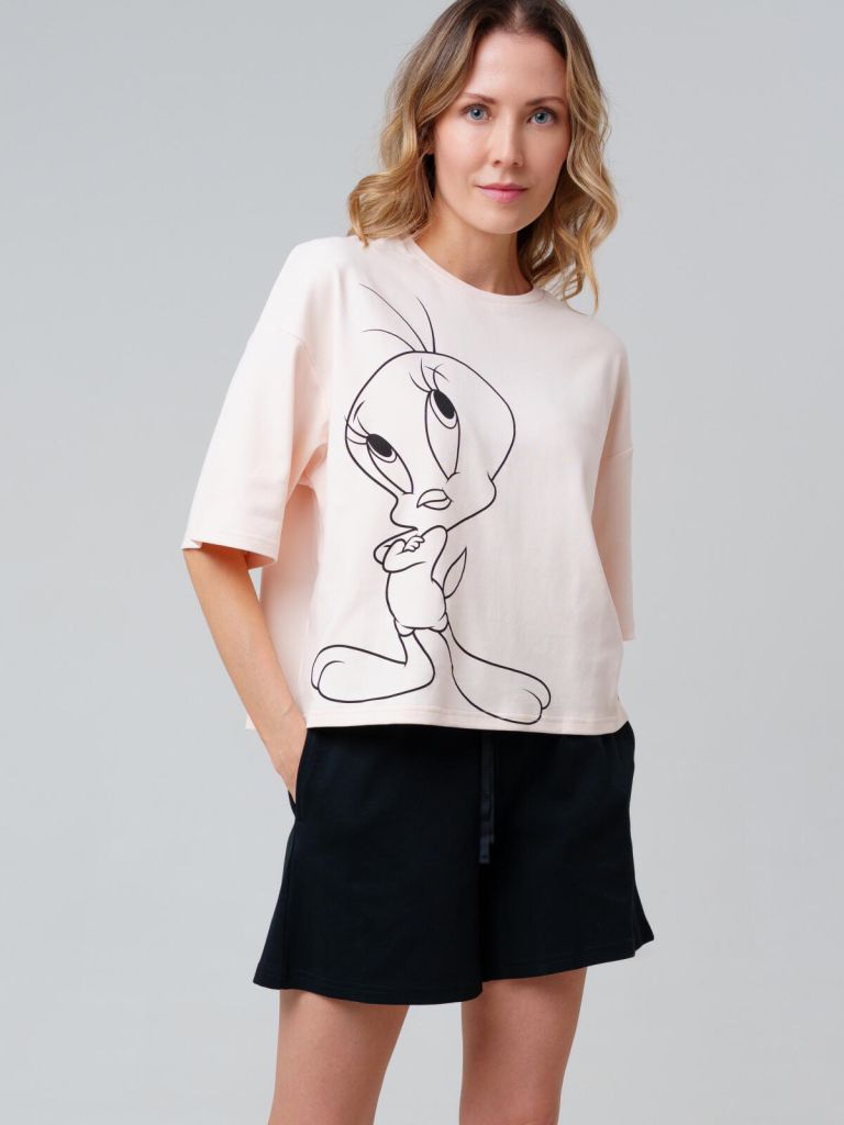 Трикотажная женская пижама Луни Тюнз от PlayToday — уютный и практичный домашний комплект. Свободный оверсайз крой, мягкая ткань и удобная посадка делают модель идеальной для домашнего гардероба в холодное время года.