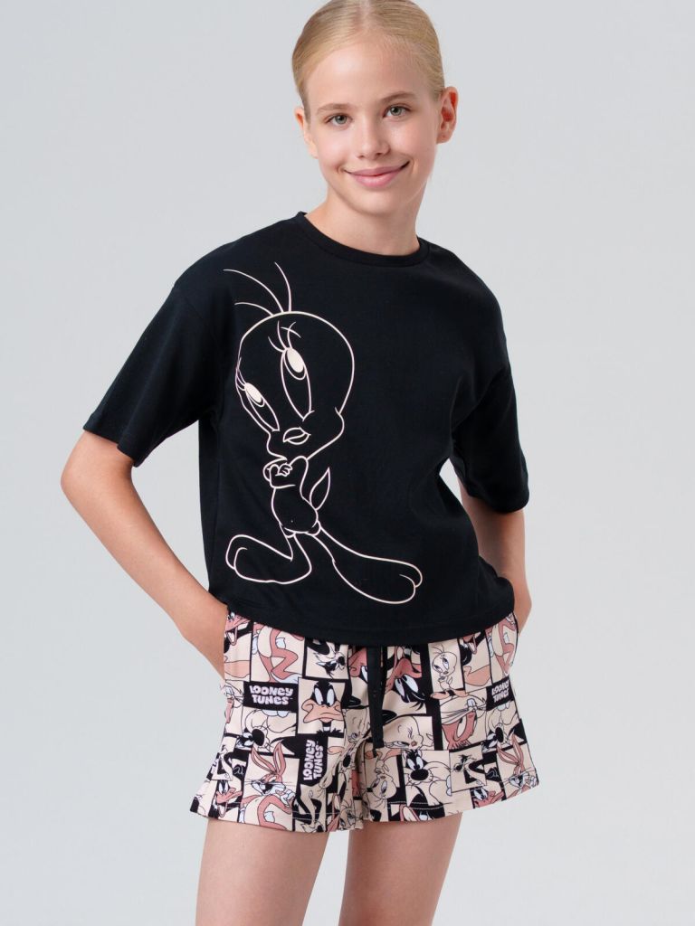 Трикотажная пижама Луни Тюнз для девочки подростка от PlayToday — уютный и практичный домашний комплект. Свободный оверсайз крой, мягкая ткань и удобная посадка делают модель идеальной для домашнего гардероба в холодное время года.