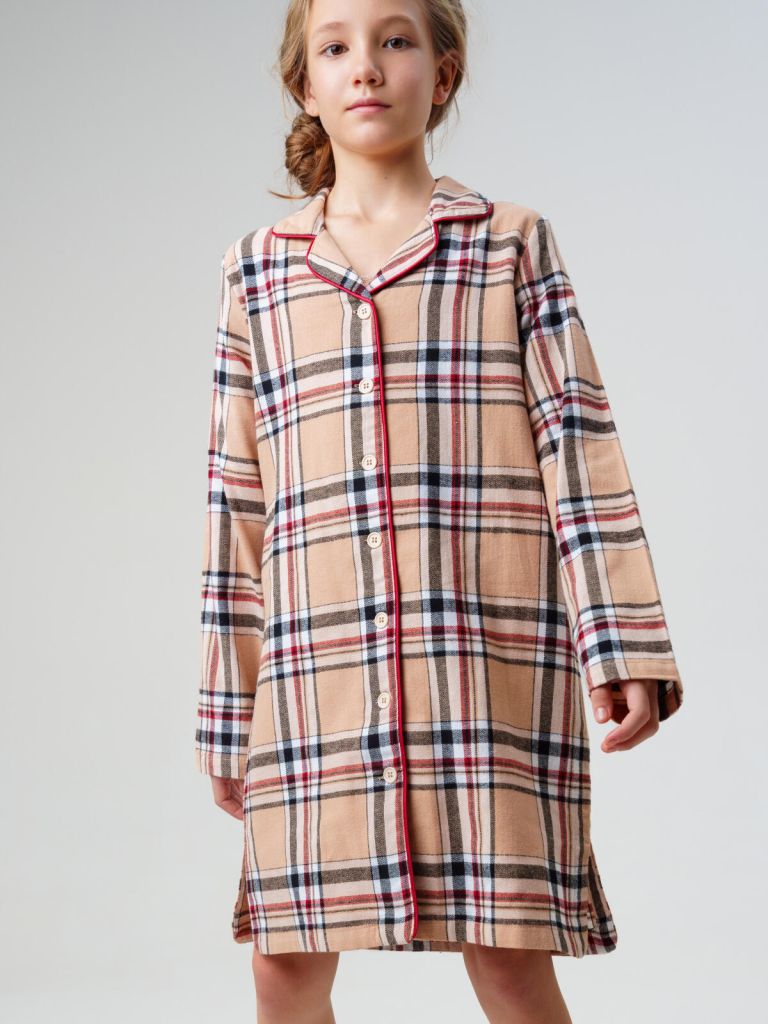 Классическая фланелевая ночная сорочка в клетку для девочки подростка от PlayToday — тепло, комфорт и нежный уход за кожей ребёнка каждую ночь.