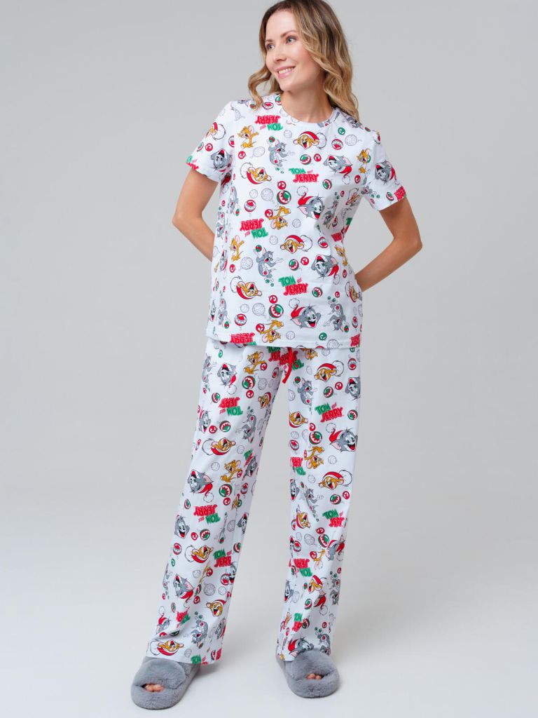 Женская трикотажная пижама Том и Джерри от PlayToday — лёгкая, уютная и яркая. В ней комфортно засыпать, отдыхать дома или проводить ленивые выходные в полной гармонии.