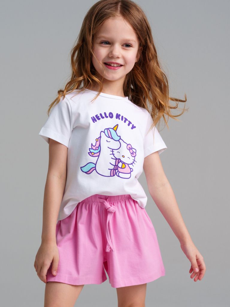 Комплект трикотажный для девочек: фуфайка (футболка), шорты