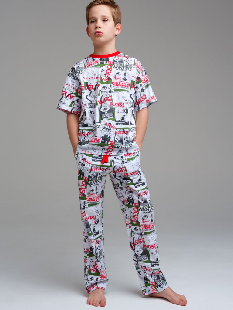 Пижама: футболка, брюки из качественного и приятного на ощупь трикотажа джерси. 100% хлопок. Футболка oversize. Брюки comfort fit с эластичным поясом со шнурком. Карманы в боковых швах.
