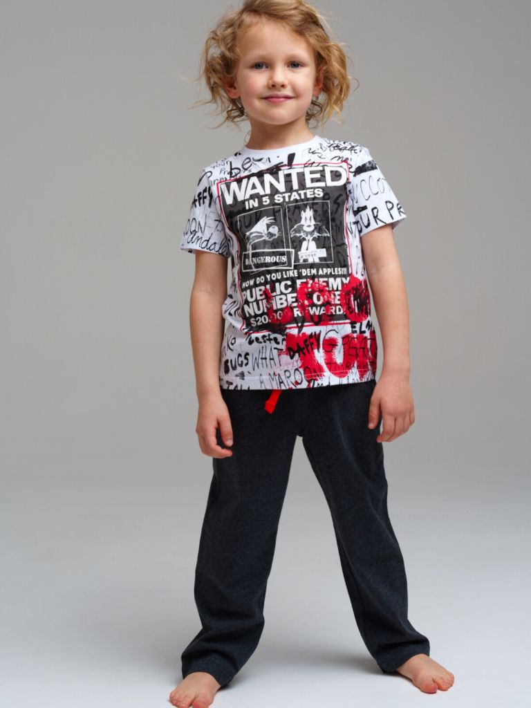 Пижама: футболка, брюки из качественного и приятного на ощупь трикотажа джерси. 100% хлопок. Футболка oversize. Брюки comfort fit с эластичным поясом со шнурком. Карманы в боковых швах.