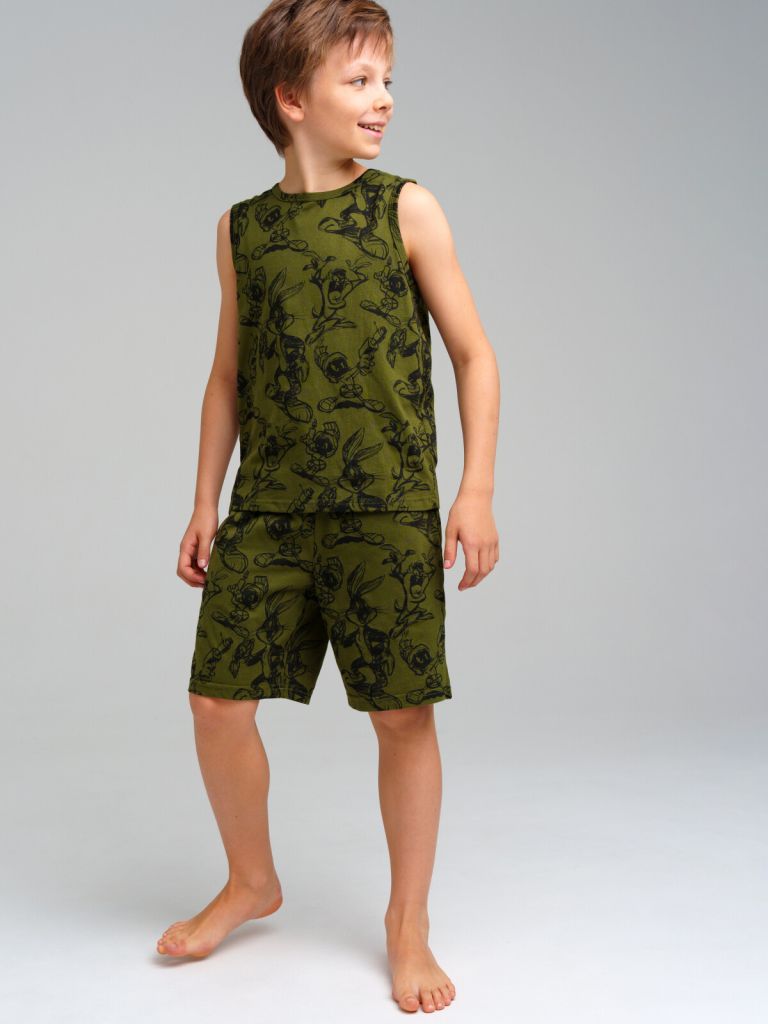 Пижама: майка, шорты из качественного и приятного на ощупь трикотажа джерси. 100% хлопок. Шорты regular fit с эластичным поясом со шнурком. Карманы в боковых швах.