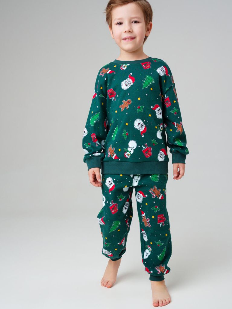 Модная зелёная детская пижама для мальчика из мягкого трикотажа от PlayToday — это комфорт, стиль и практичность для сна, игр и отдыха дома.