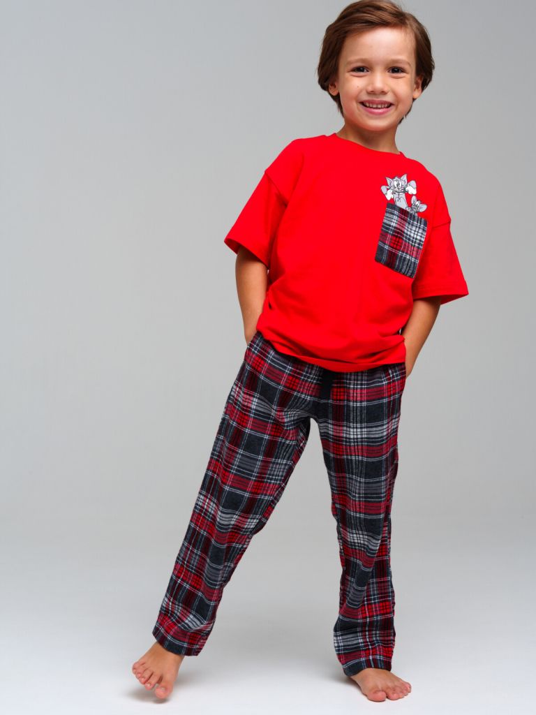 Пижама детская для мальчика. Футболка из качественного и приятного на ощупь трикотажа джерси с высоким содержанием хлопка 95%. Благодаря наличию эластана в составе ткани изделие проще в уходе и держит форму. Брюки - 100% хлопок. Фланель - мягкая, приятная к телу ткань с небольшим начесом. Эластичный пояс с тесьмой позволяет легко надевать брюки и утягивать до комфортной посадки.