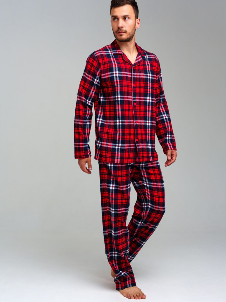 Мужская фланелевая пижама. 100% хлопок. Фланель - мягкая, приятная к телу ткань с небольшим начесом. Застежка на пуговицы. Карманы в брюках. Эластичный пояс с тесьмой позволяет легко надевать брюки и утягивать до комфортной посадки. Можно составить family look c детским вариантом пижамы аналогичного дизайна.