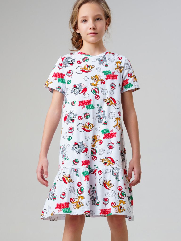 + яркий новогодний детский принт Том и Джерри — девочке будет приятно носить сорочку каждый день