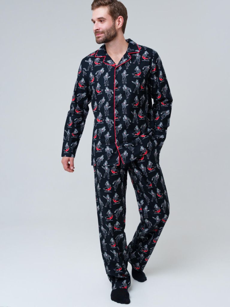 Эта мужская пижама выполнена из натуральной фланели с лёгким микроначёсом, который обеспечивает мягкость и тепло. Ткань дышит, не раздражает кожу и сохраняет форму после стирок. Классическая рубашка на пуговицах и прямые брюки создают свободный и удобный силуэт, в котором легко двигаться и спать.