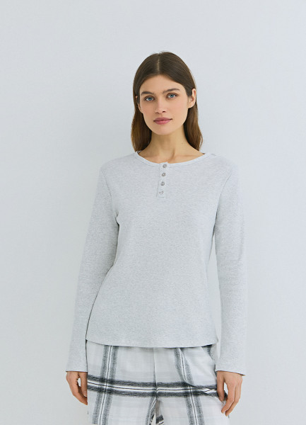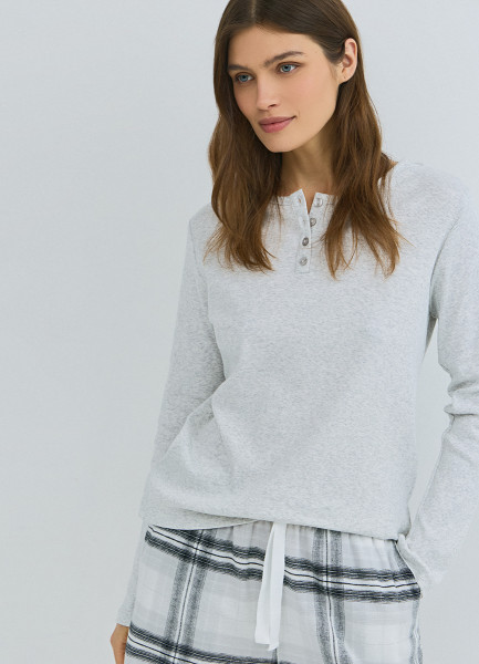 Пижамный лонгслив из ажурного трикотажа, Серый