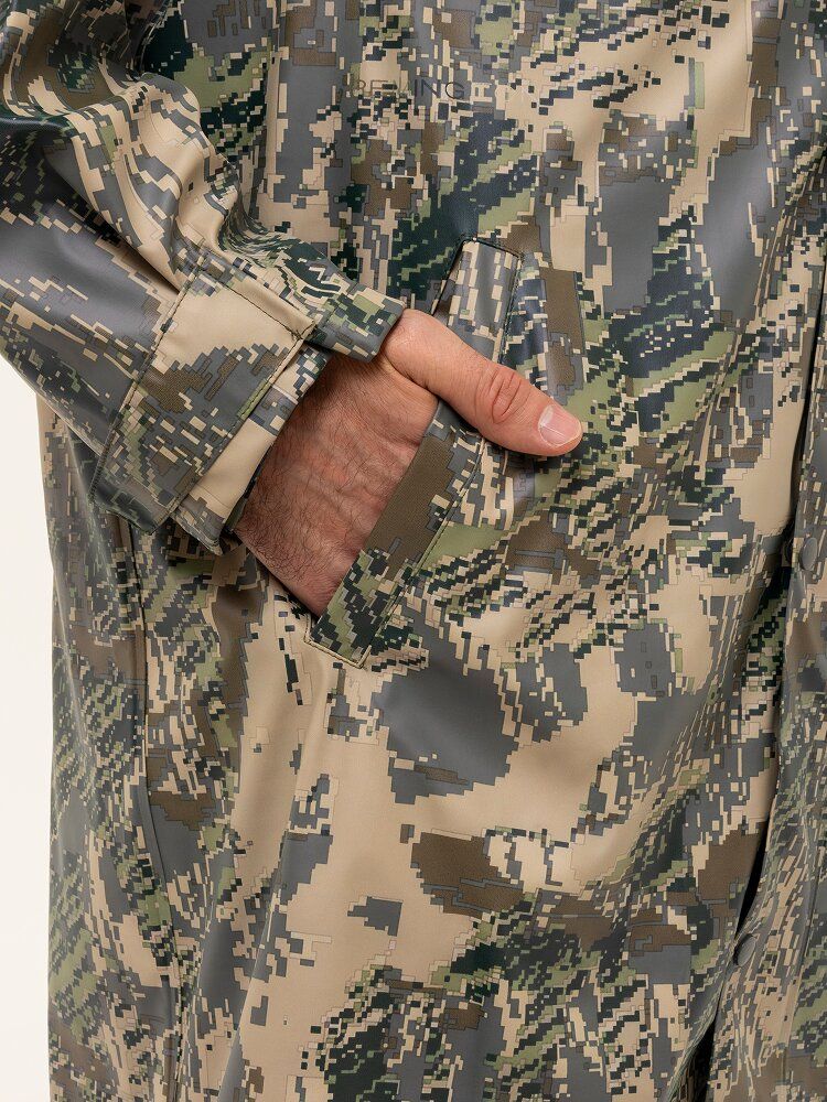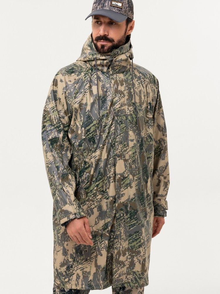 Плащ-тент Remington PU Waterproof Figure изготовлен из полиуретана — эластичного и прочного материала, обеспечивающего полную защиту от влаги и ветра. Широкий крой не ограничивает движения и подходит для разных типов фигуры. Капюшон с регулируемыми кулисами при необходимости убирается в воротник, а воротник-стойка дополнительно защищает от осадков и ветра. Модель оснащена молнией и кнопками для надежной фиксации, а также двумя карманами для хранения необходимых вещей. Манжеты на велкро повышают комфорт в носке и предотвращают продувание.Преимущества:• Полиуретан — 100% защита от влаги и ветра.• Широкий крой — свобода движений и универсальность посадки.• Капюшон с кулисами и воротник-стойка — защита от осадков и ветра.• Молния и кнопки застежки — надежная фиксация.• Два кармана — удобное хранение вещей.• Манжеты на велкро — регулировка и защита от продувания.• Цвет Figure — эффективная маскировка в лесных и полевых ландшафтах, снижает заметность для животных и обеспечивает гармоничное слияние с природой.