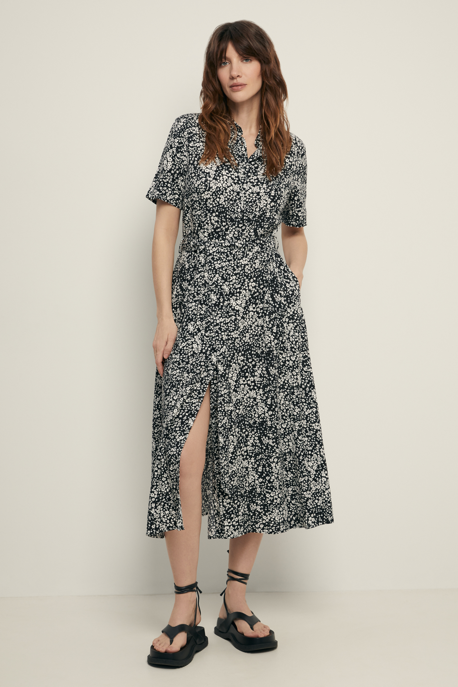 Платье с нагрудными карманами и поясом