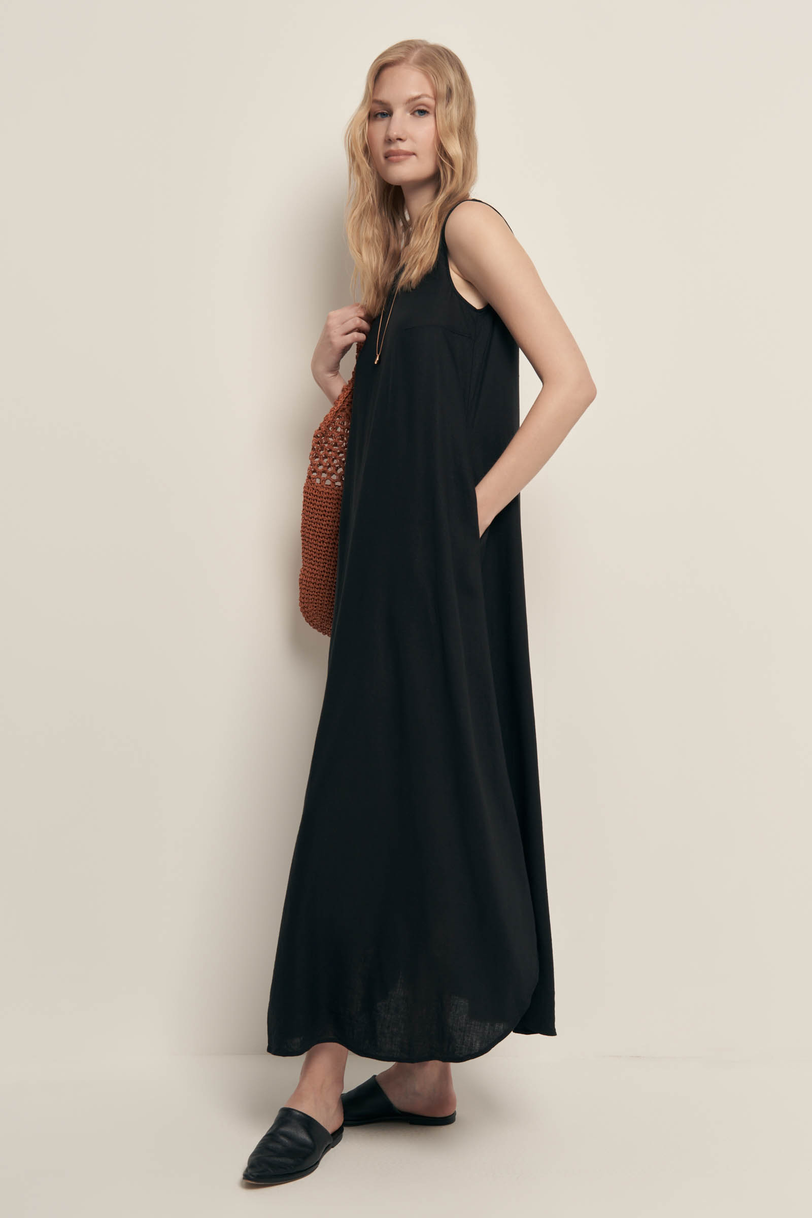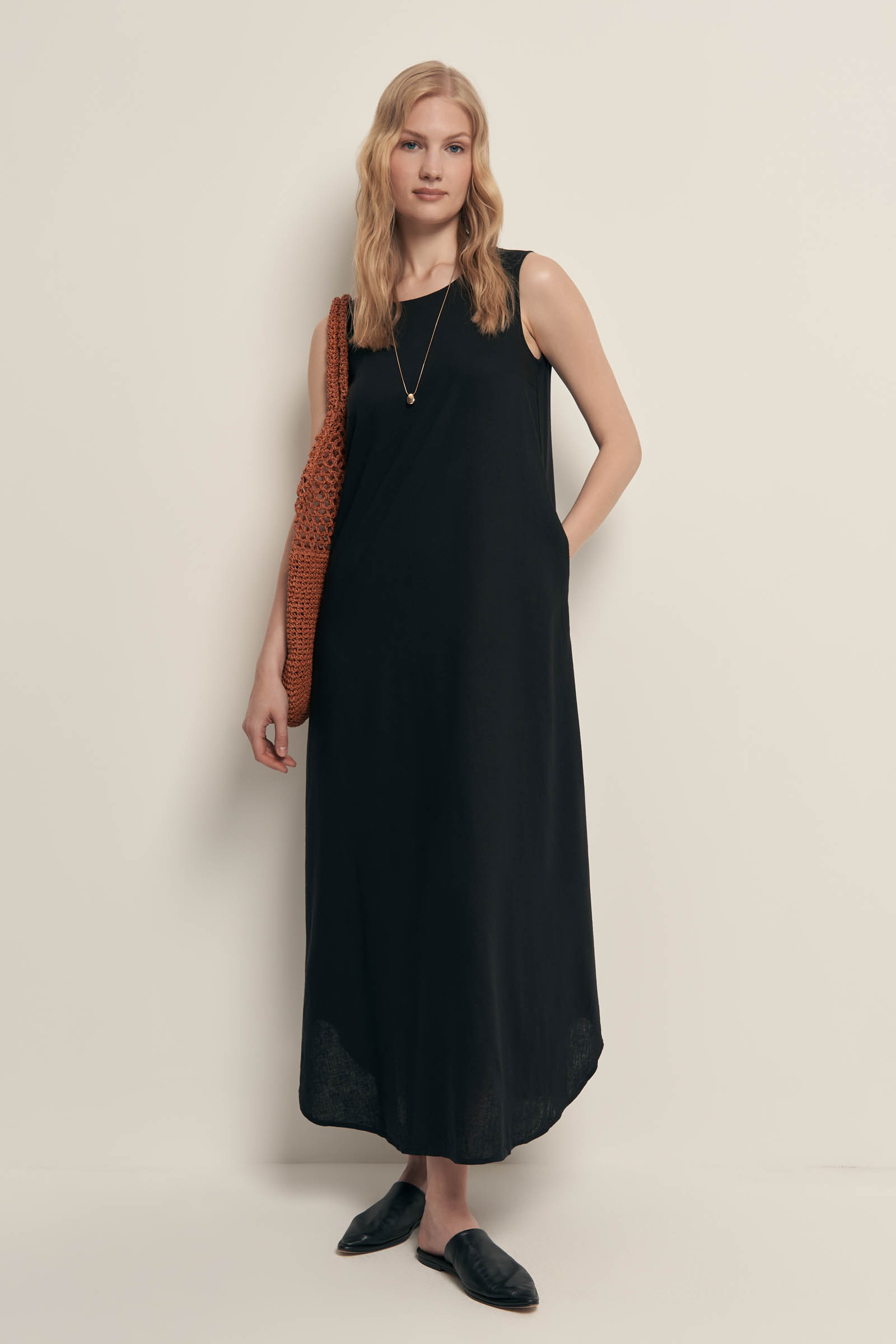 Платье миди льняное с округлым вырезом