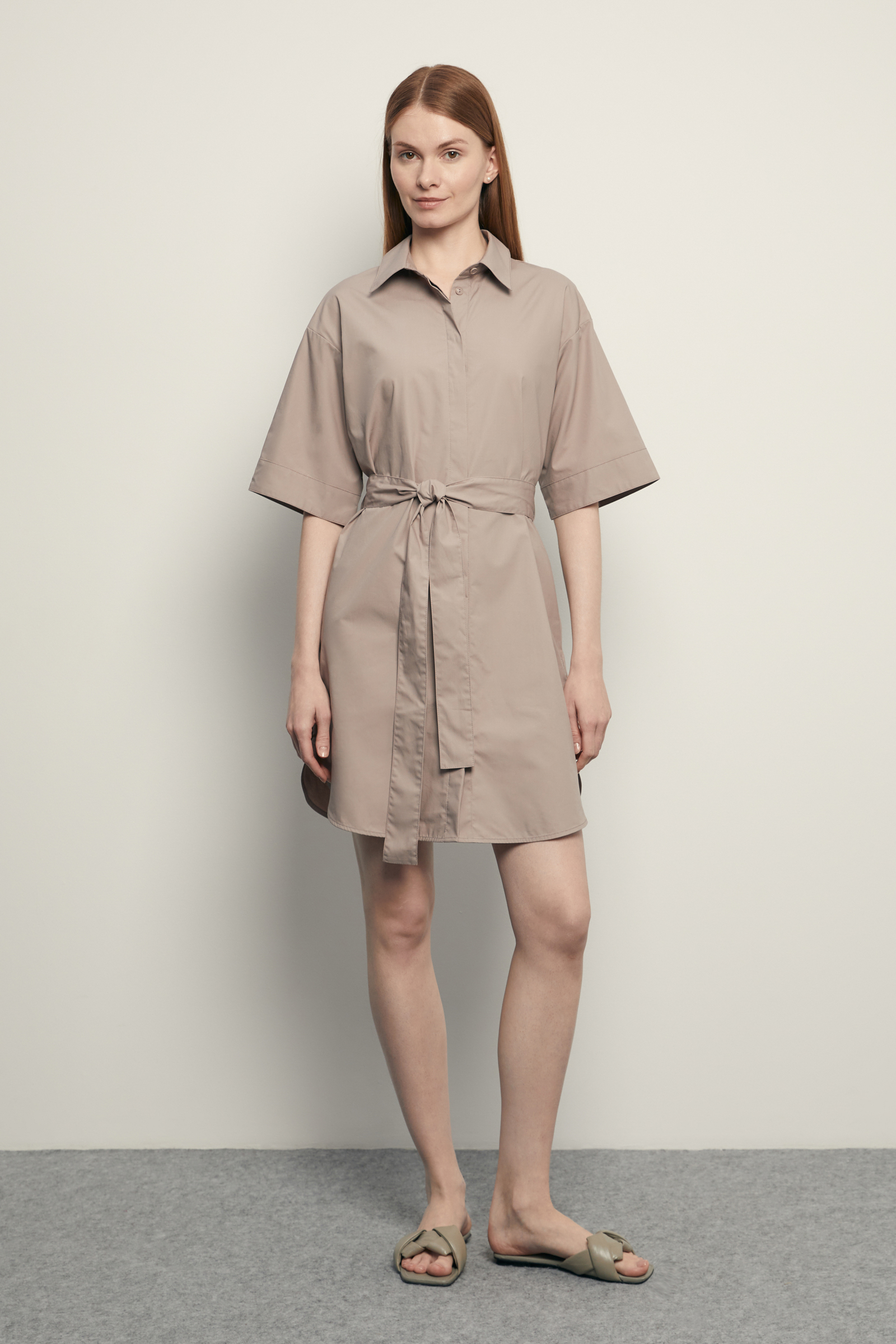 Платье с коротким рукавом и поясом