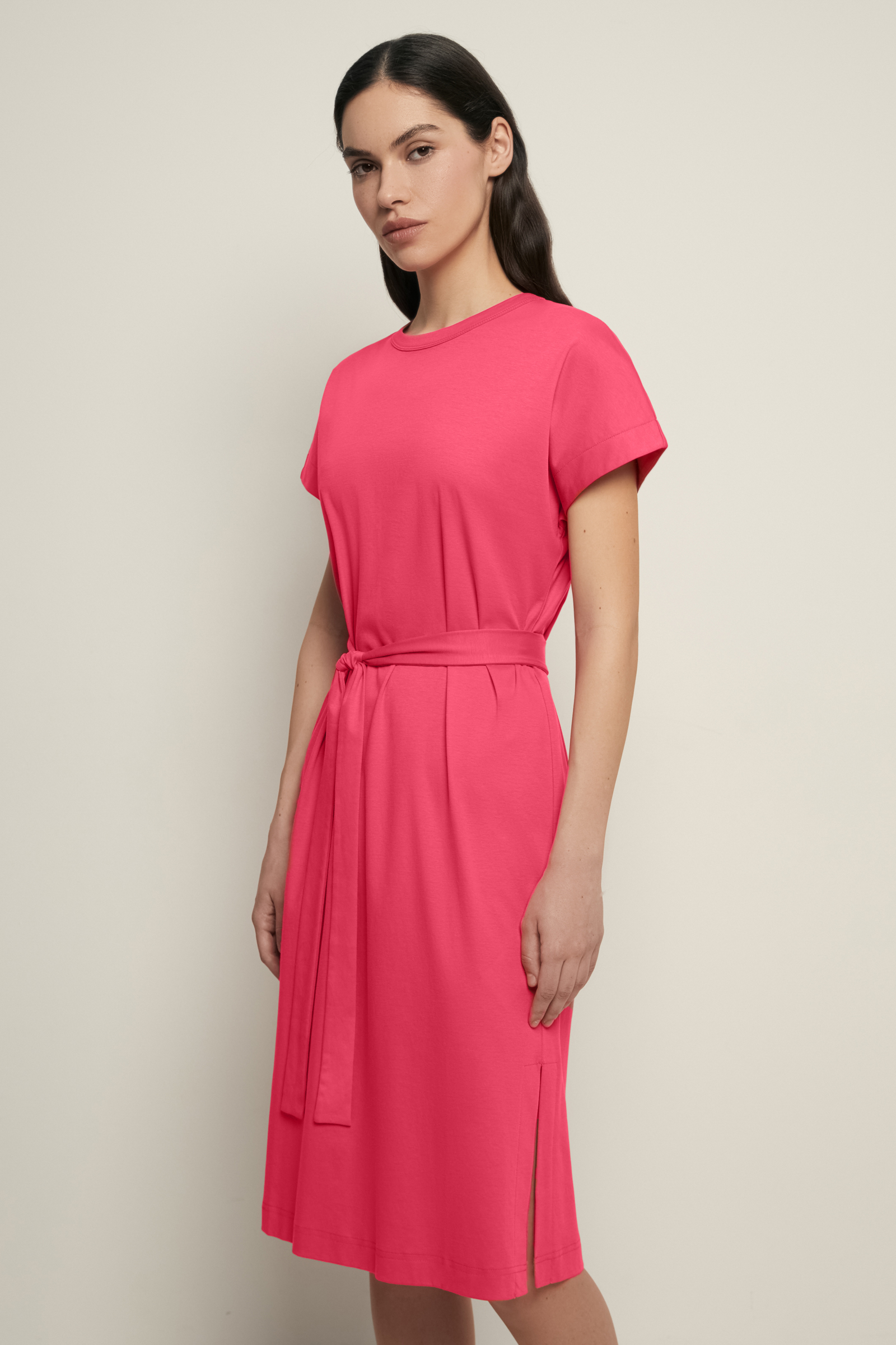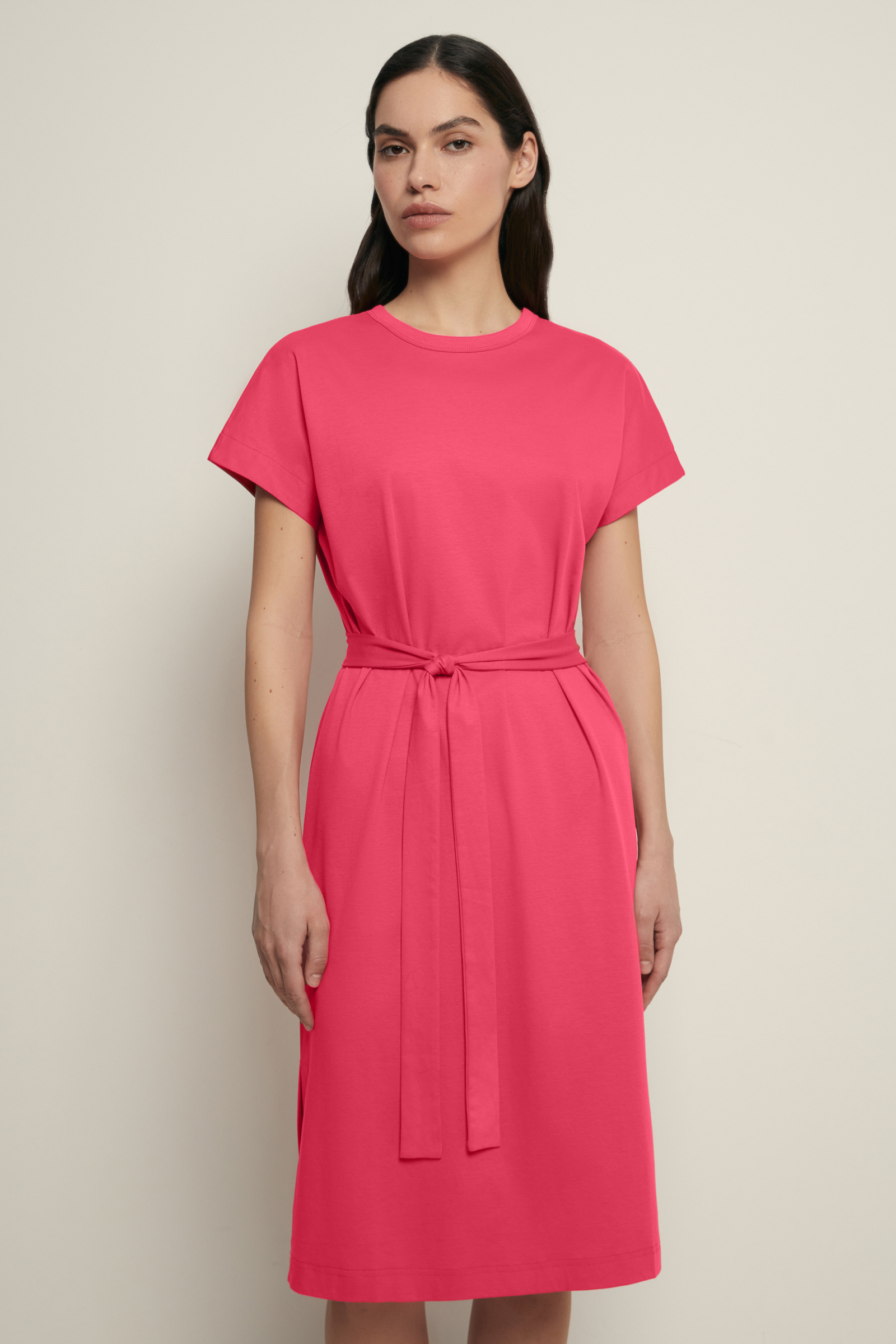 Платье из мерсеризованного хлопка с поясом