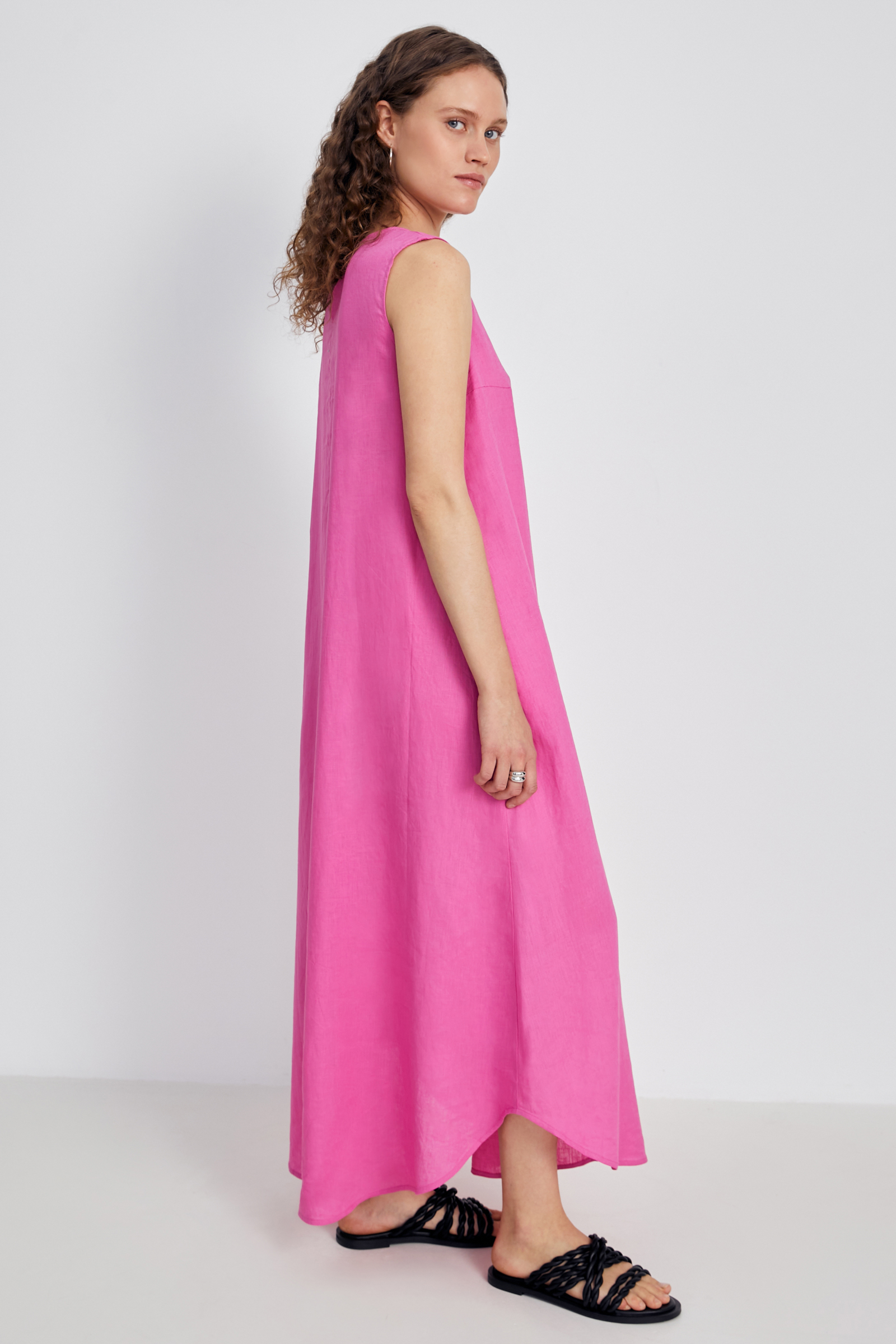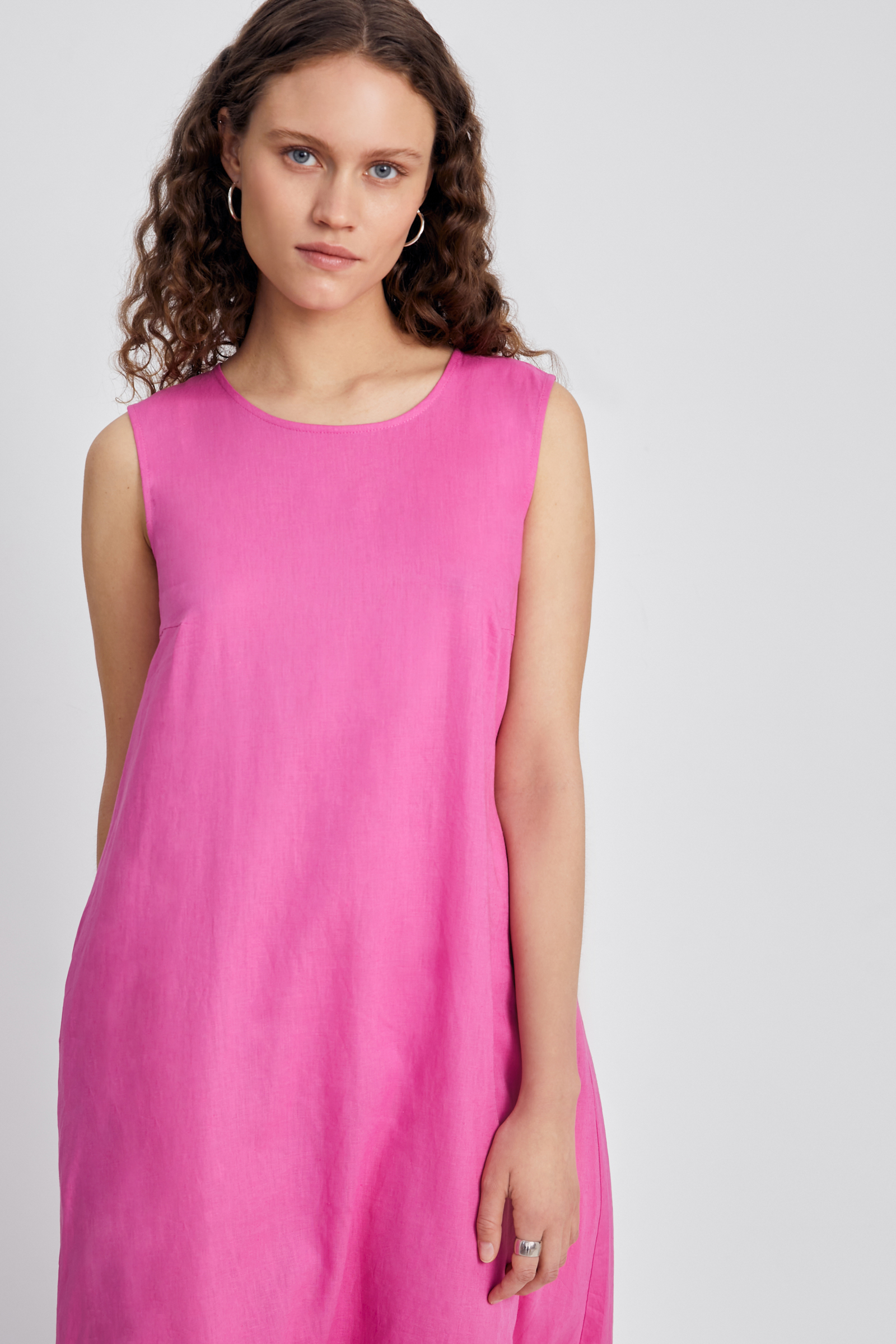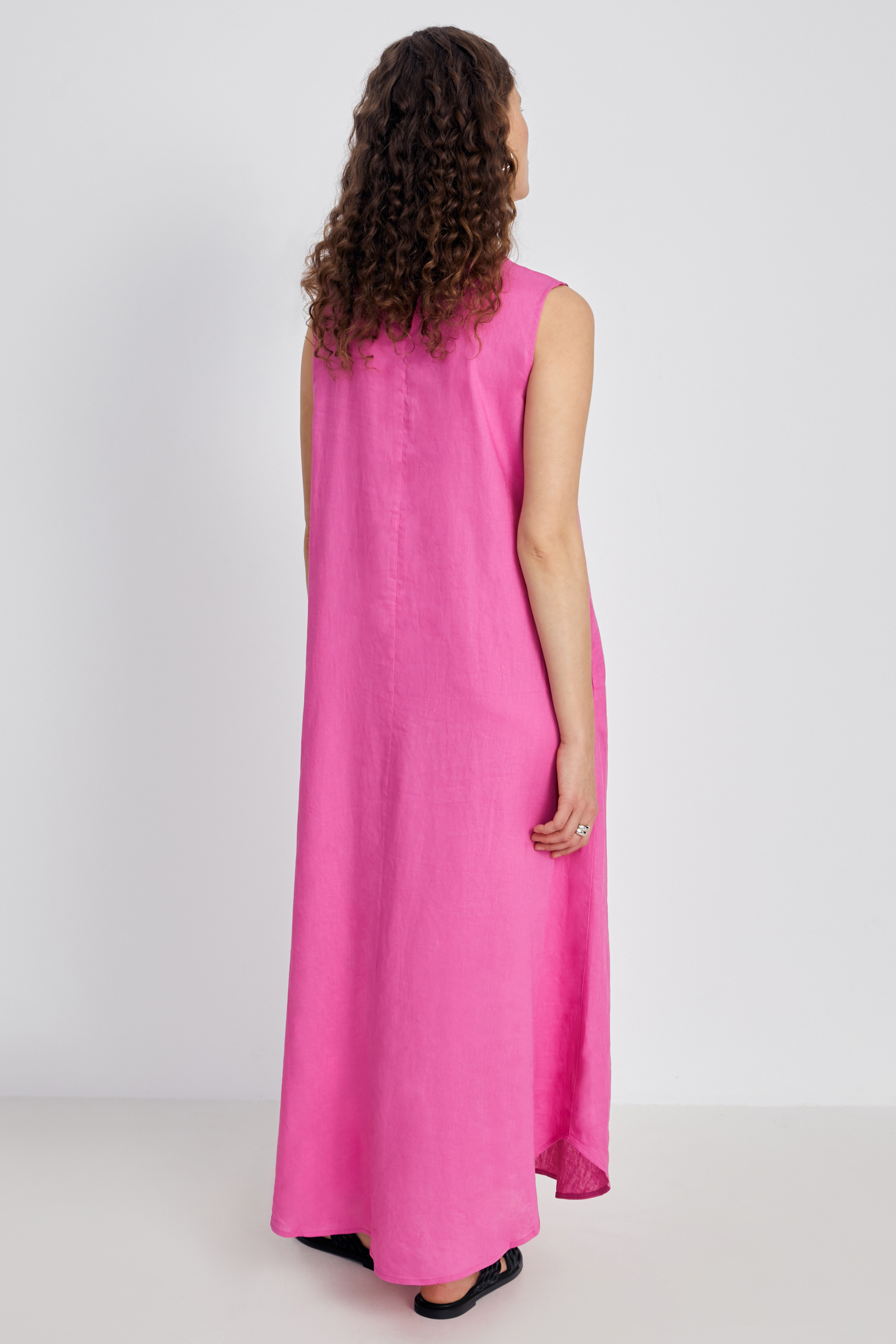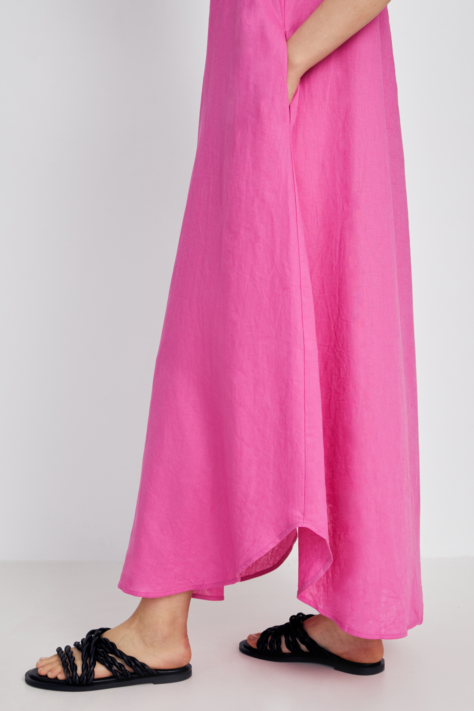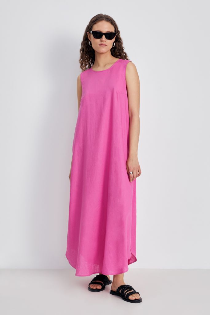Платье миди льняное с округлым вырезом