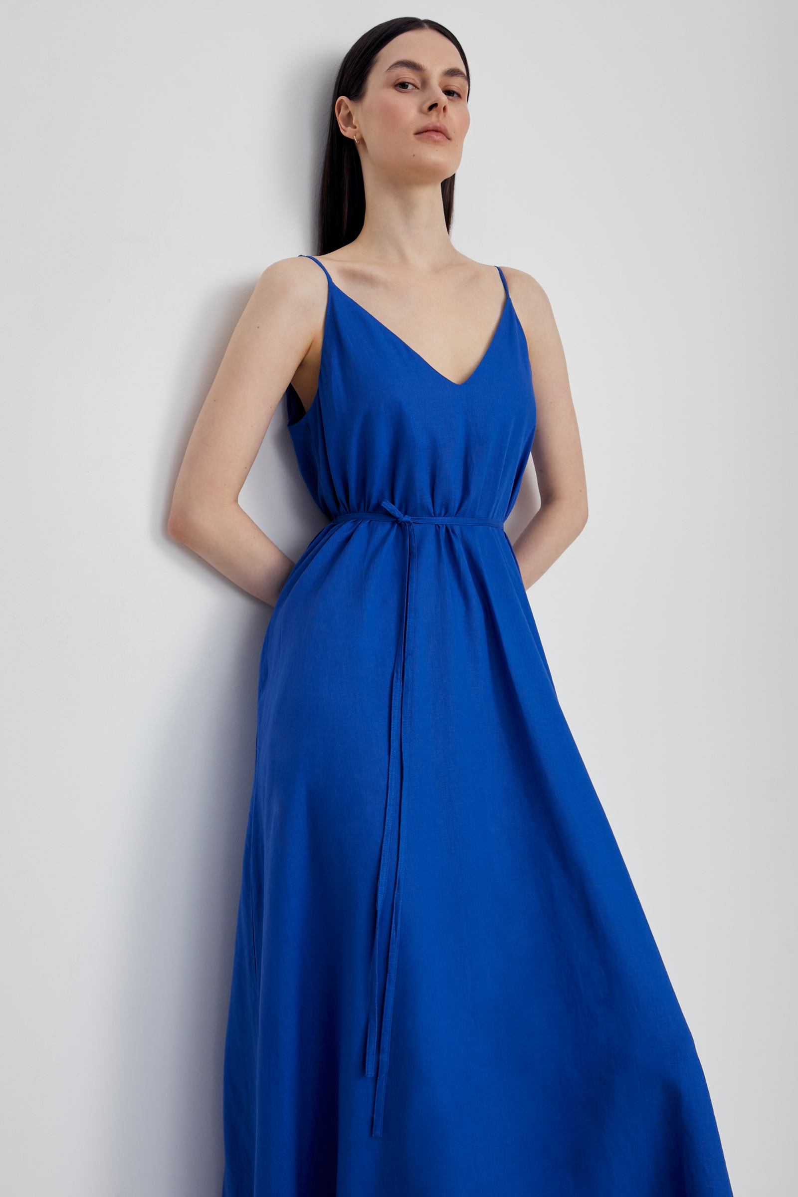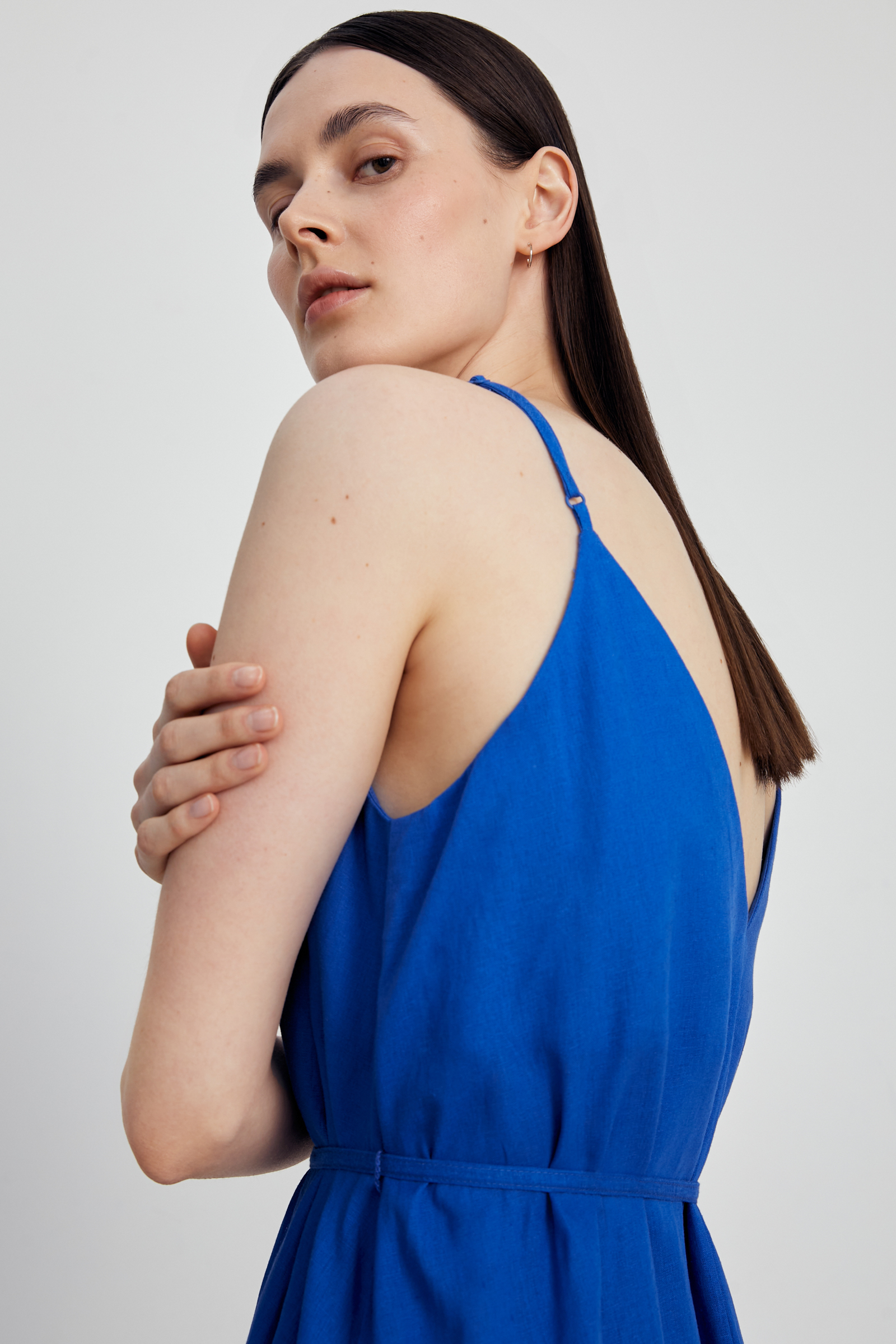 Сарафан макси льняной с вырезом на спине