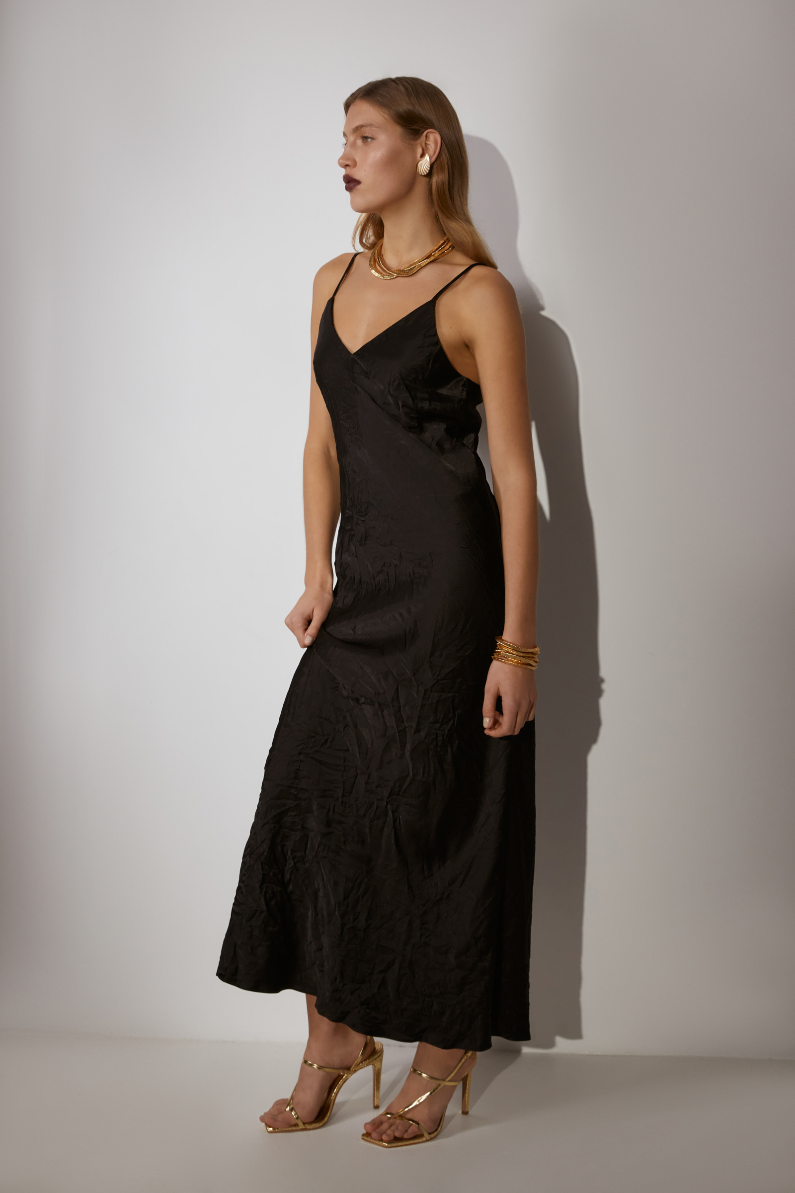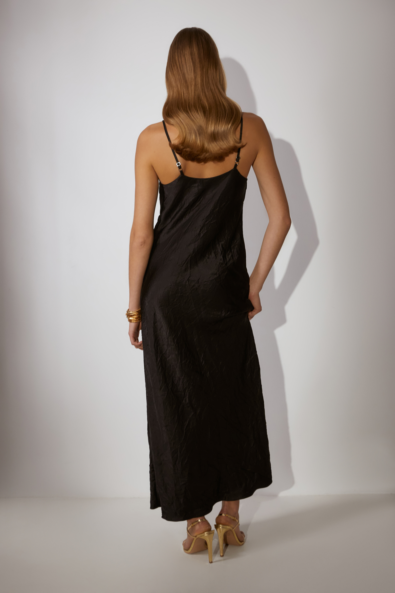 Атласное платье на бретелях