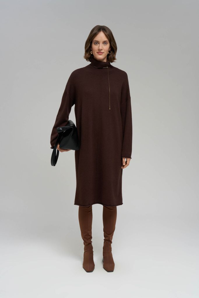 Вязаное платье свободного кроя с воротником-стойко