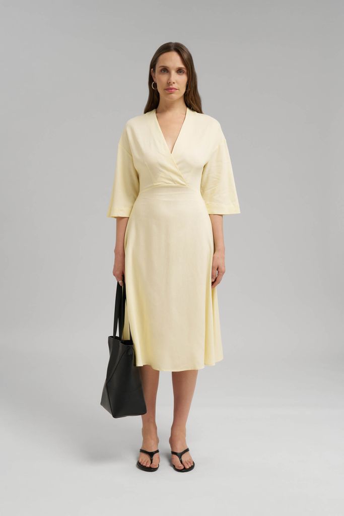 Приталенное платье миди со льном
