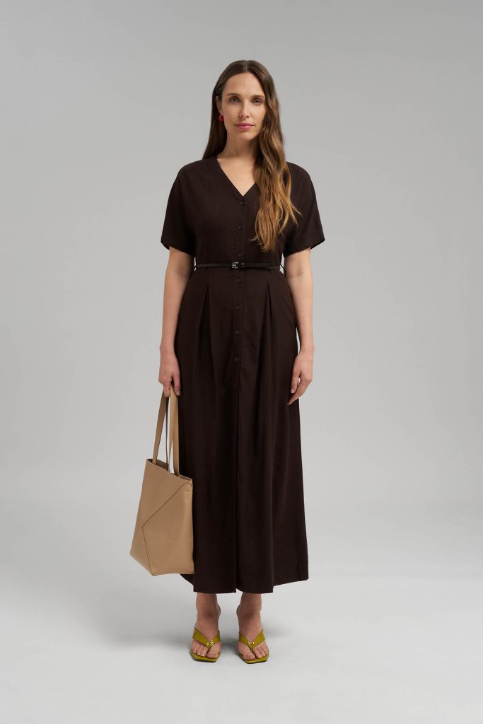 Приталенное платье миди со льном