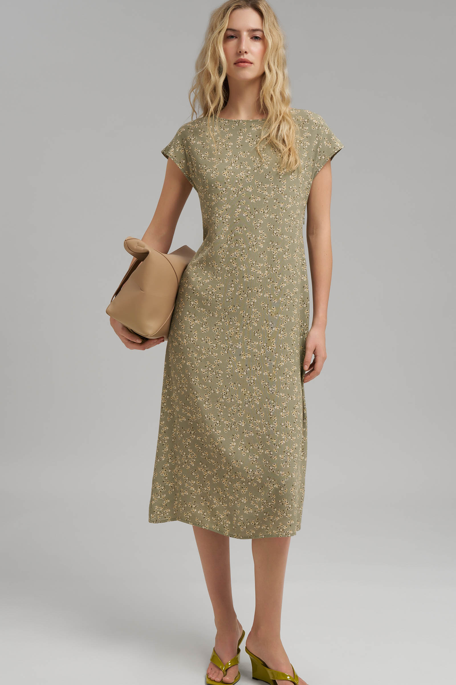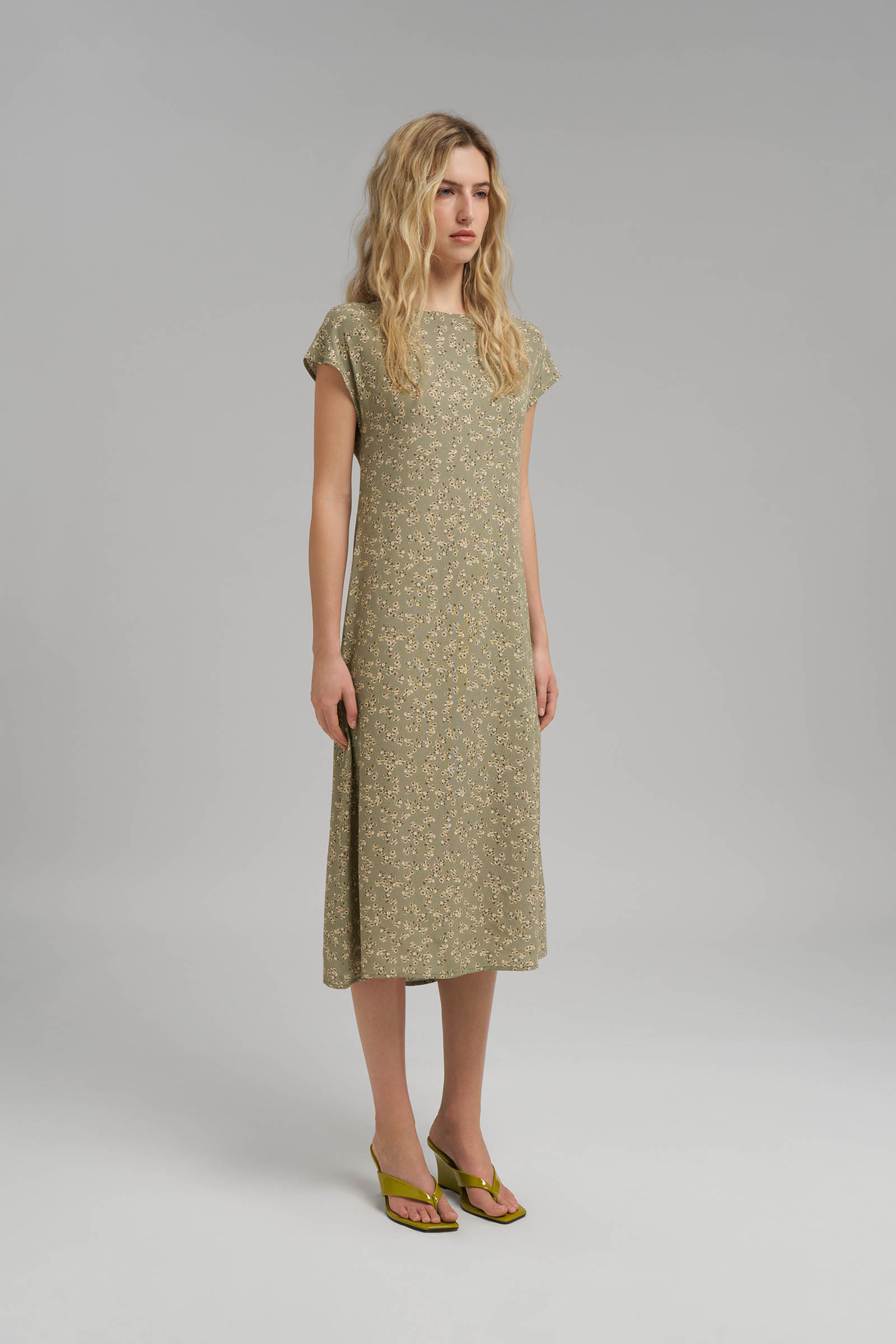 Приталенное платье миди со льном