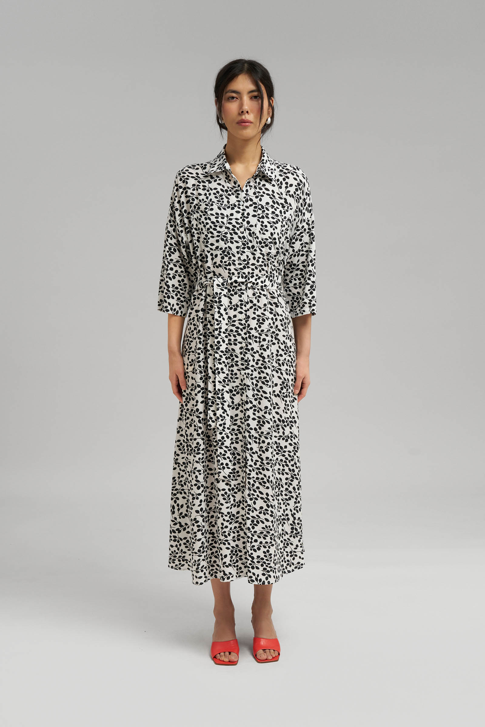 Платье миди с эластичным поясом