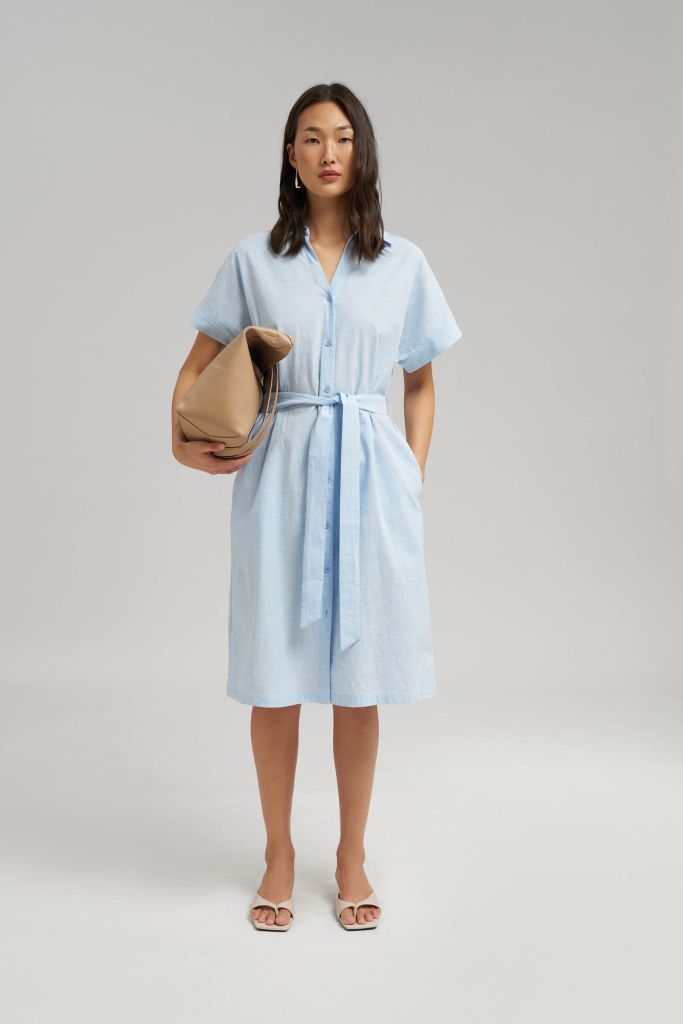 Платье с коротким рукавом и поясом