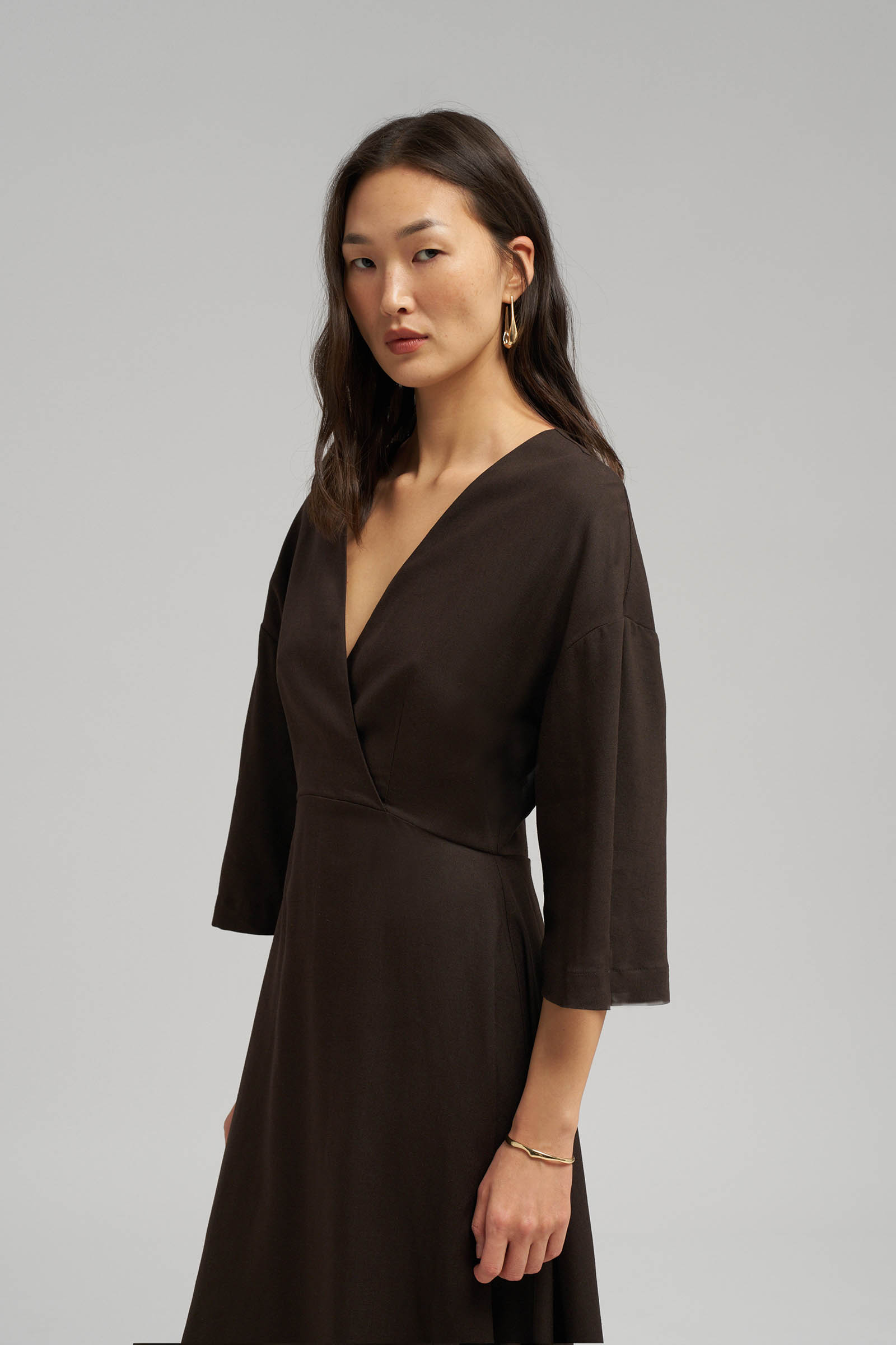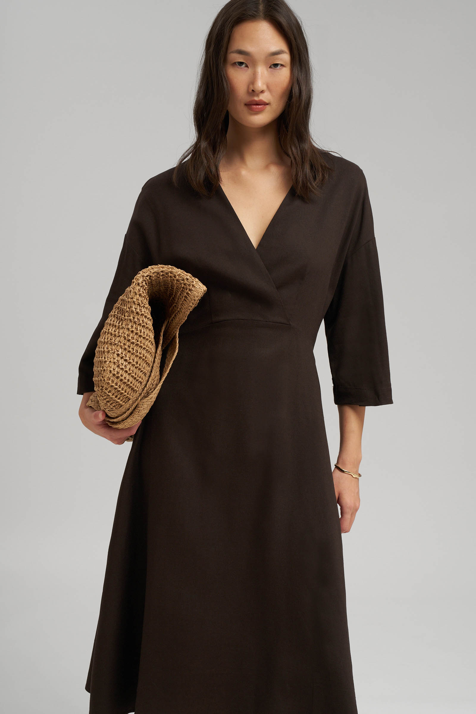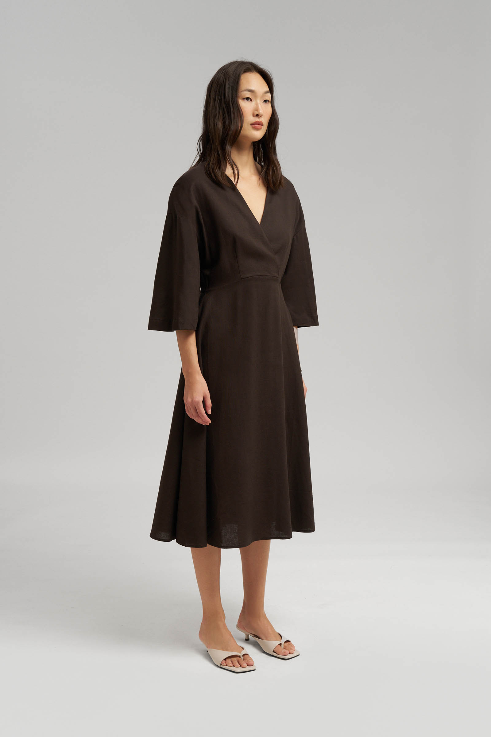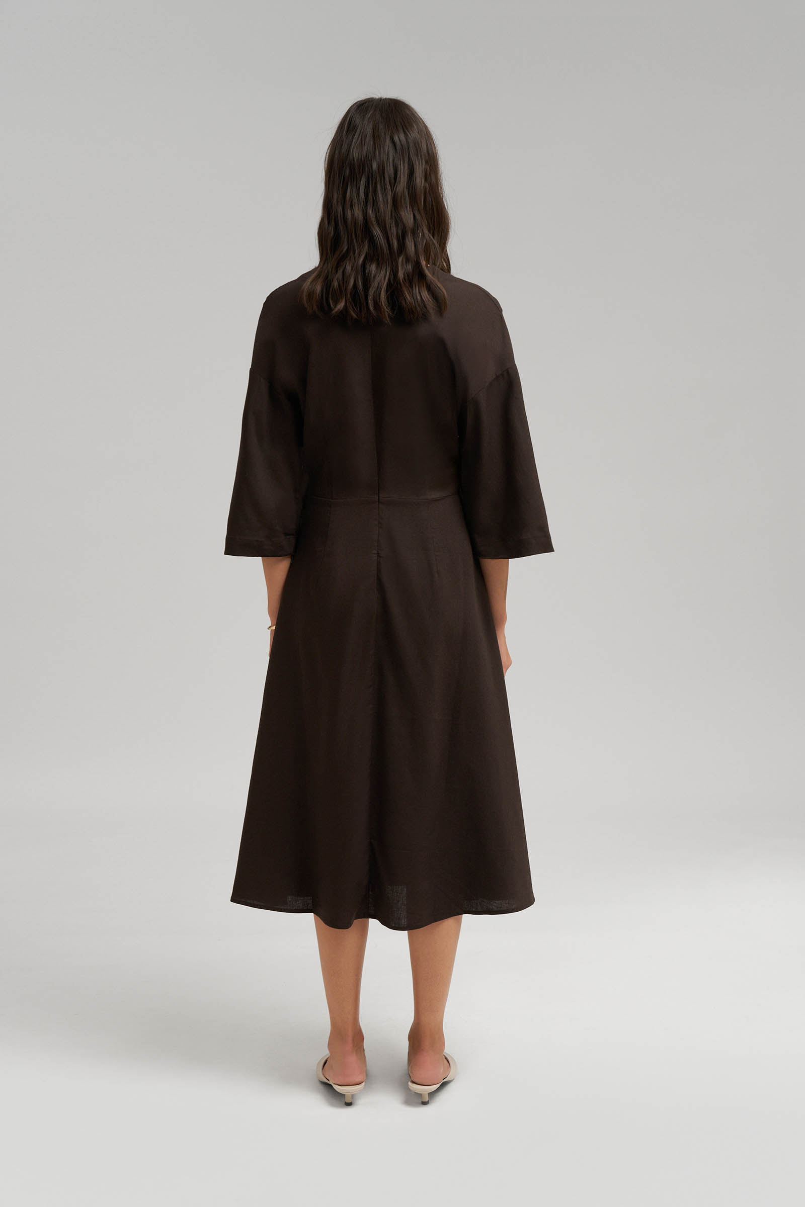Приталенное платье миди со льном
