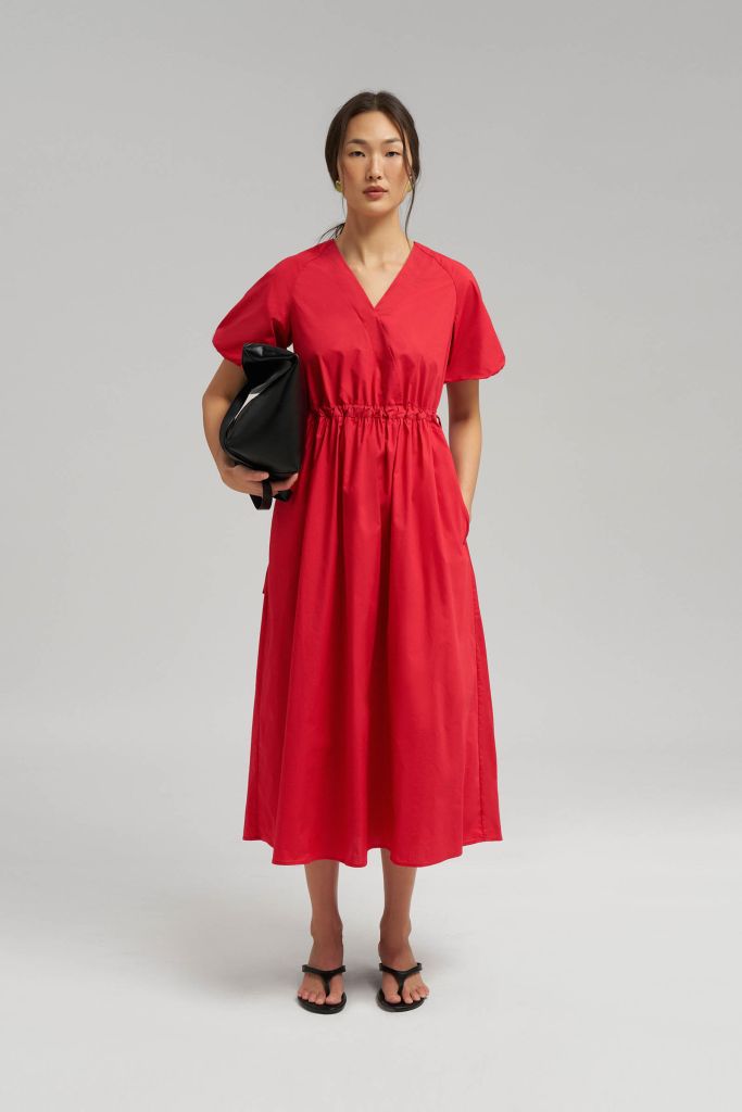 Свободное платье миди на кулиске