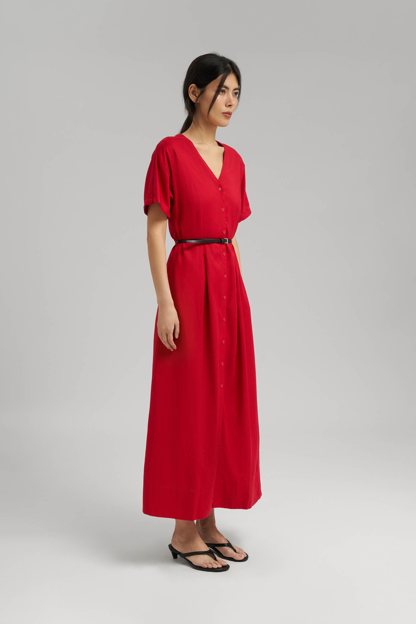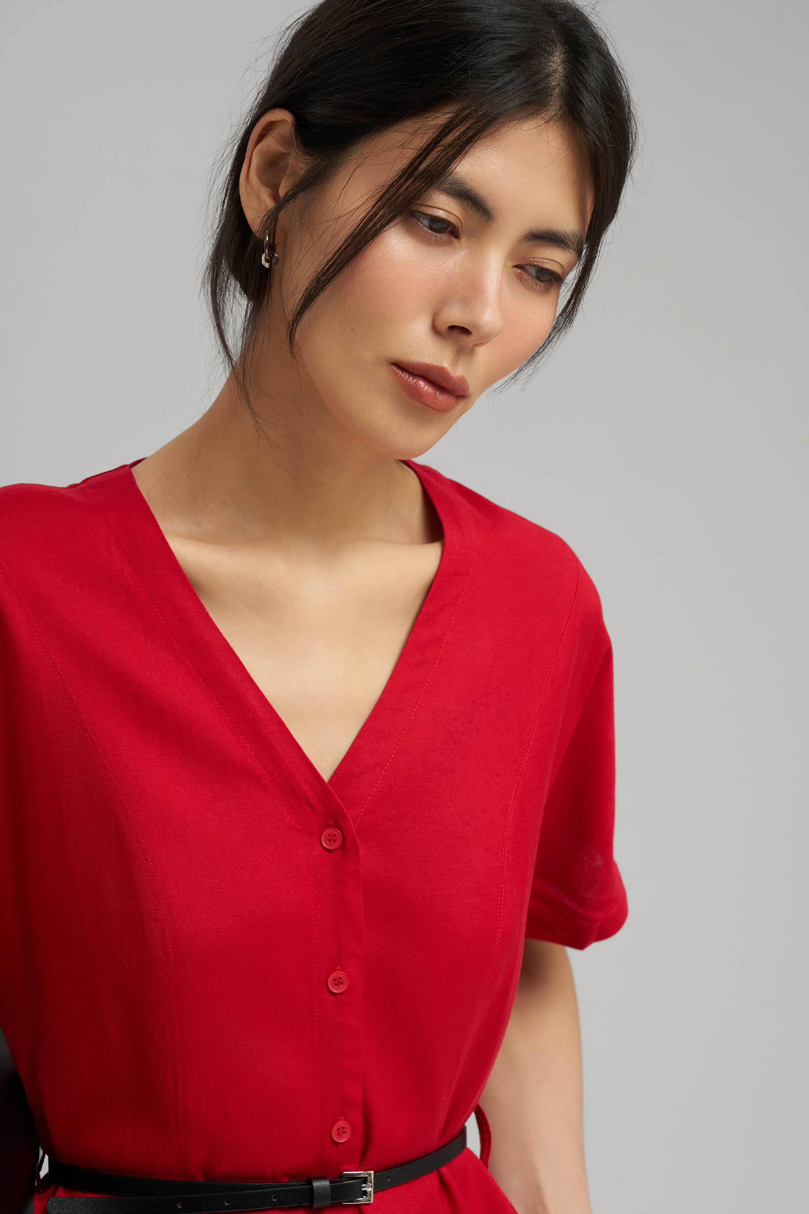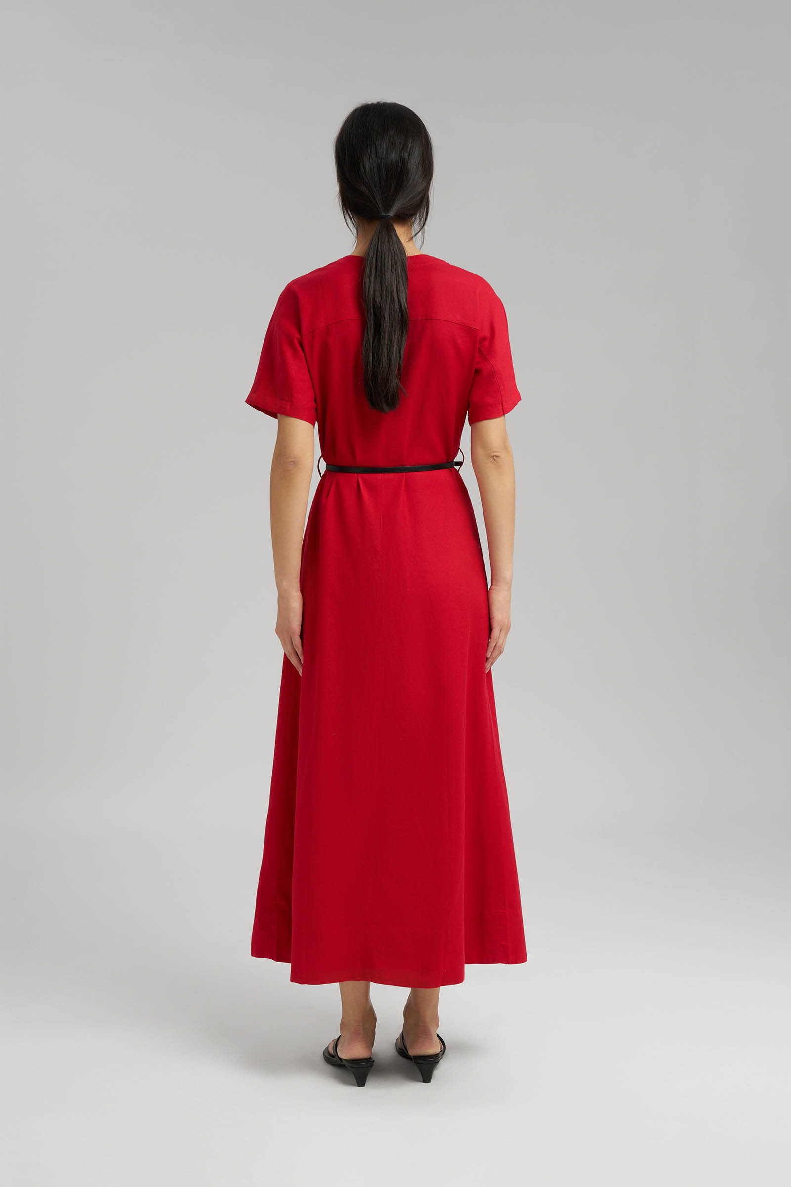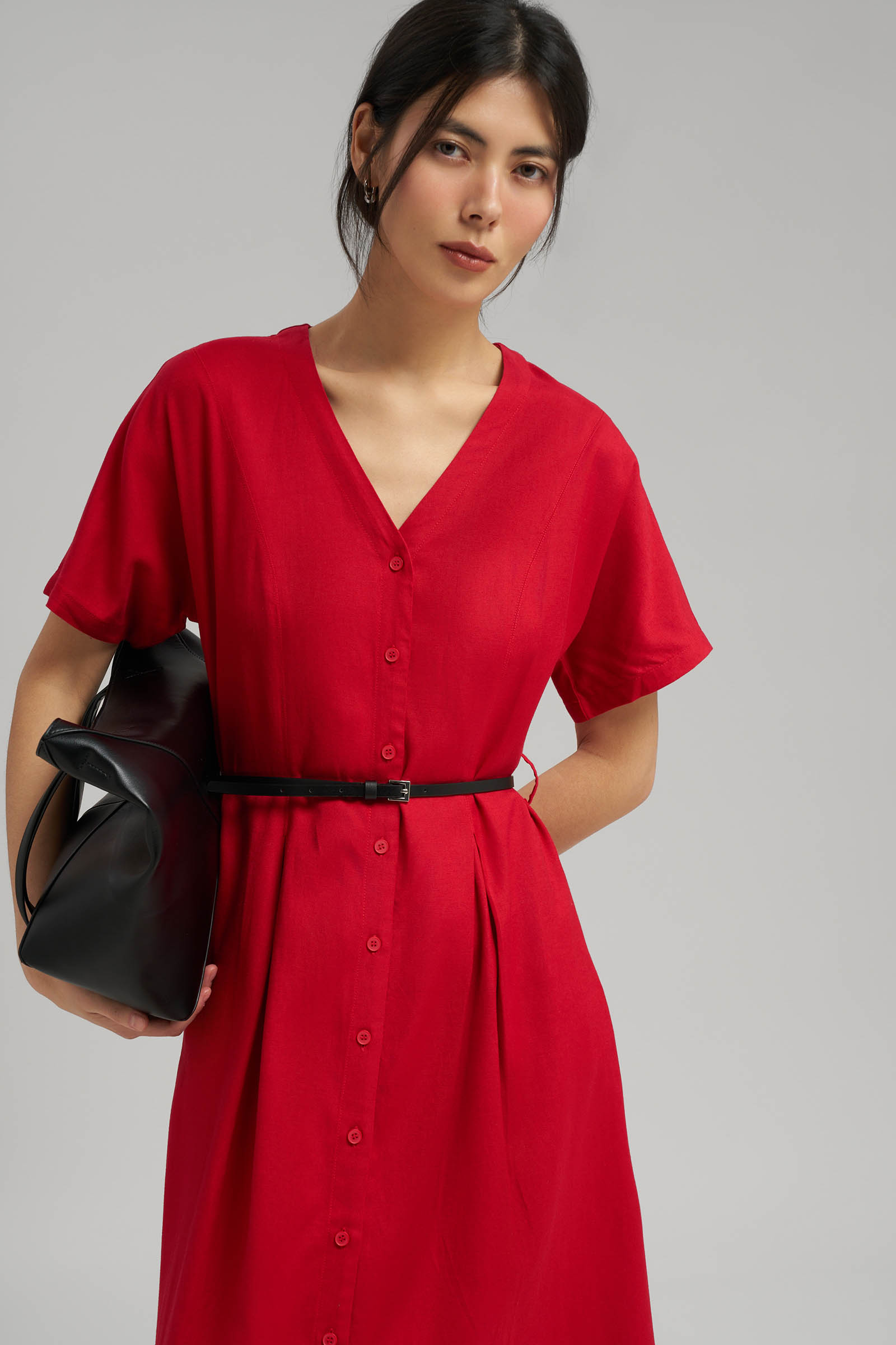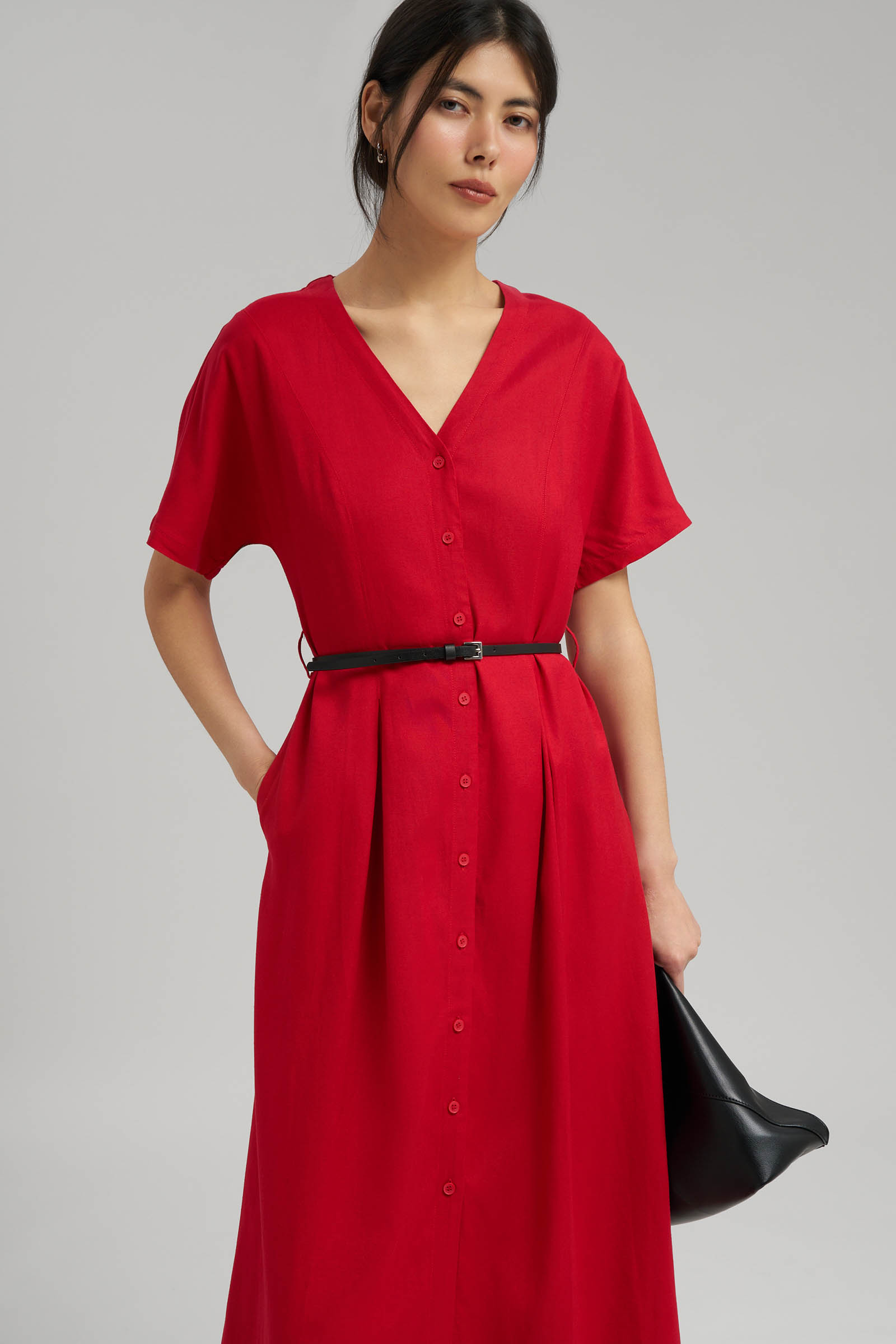 Приталенное платье миди со льном