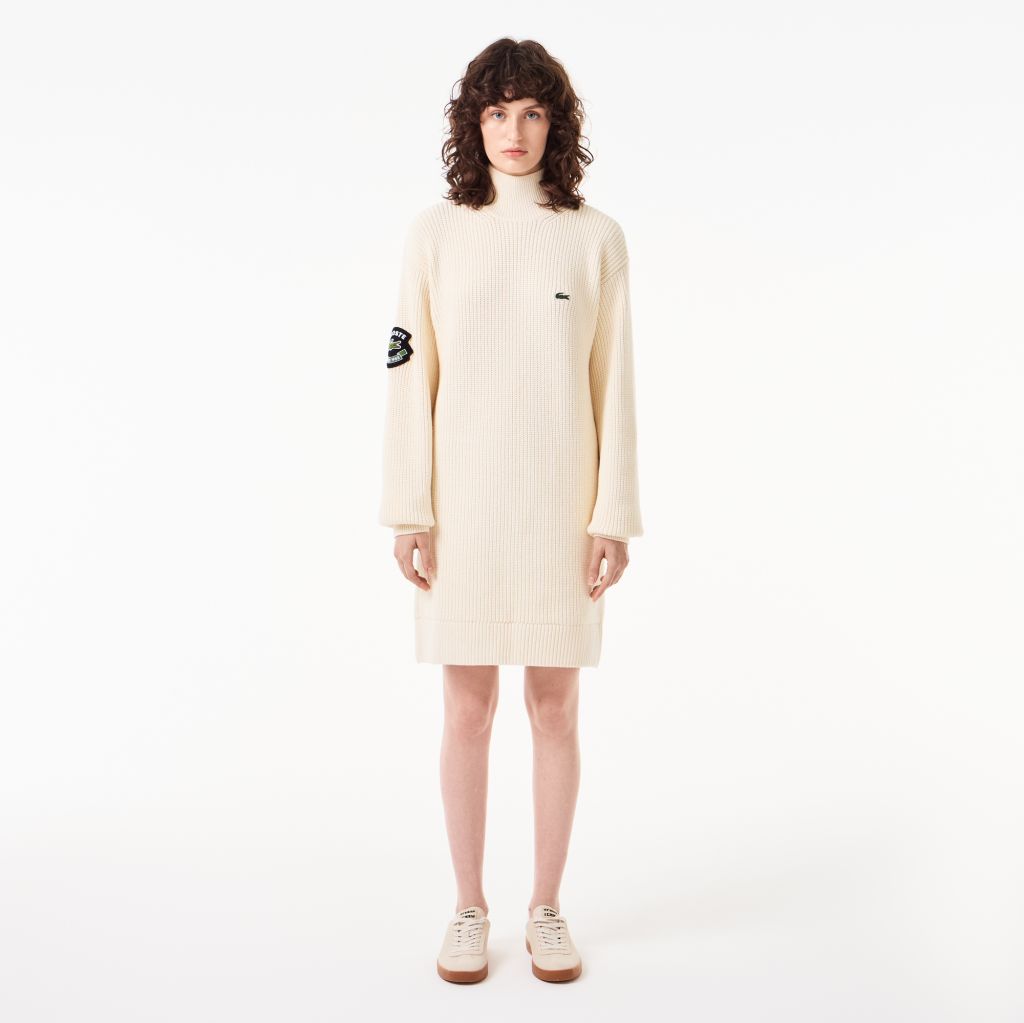 Женское трикотажное платье Lacoste с длинным рукавом и высоким воротом